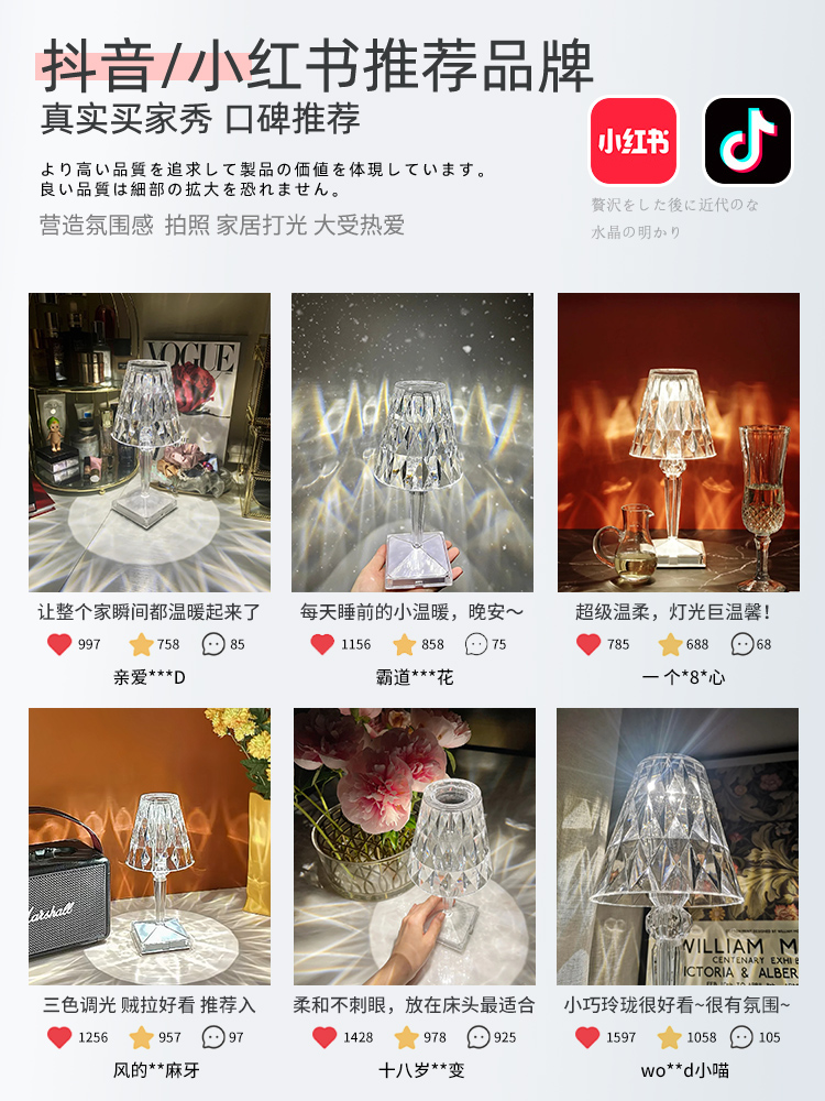 Diamond light luxury crystal table lamp Internet celebrity post-modern creative bedroom guest restaurant bedside designer study decorative lamp