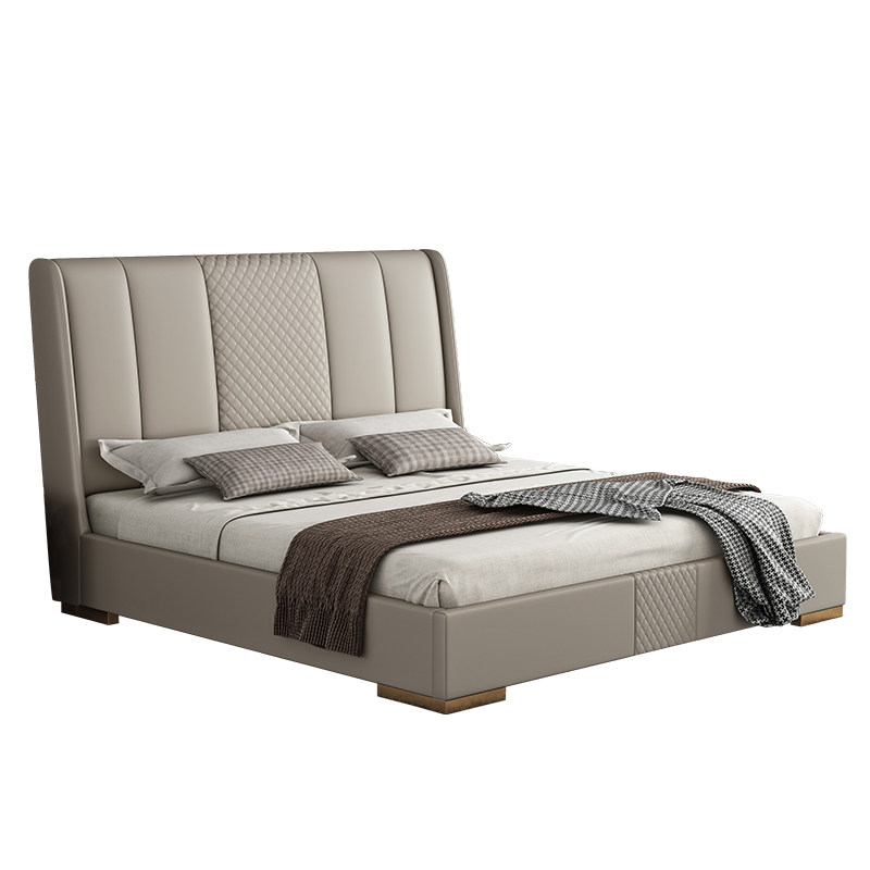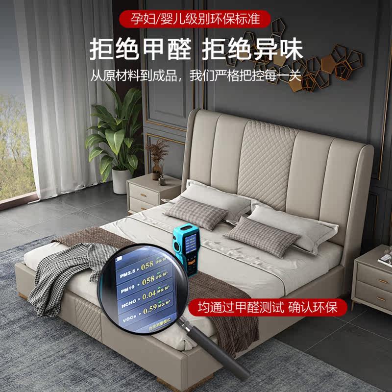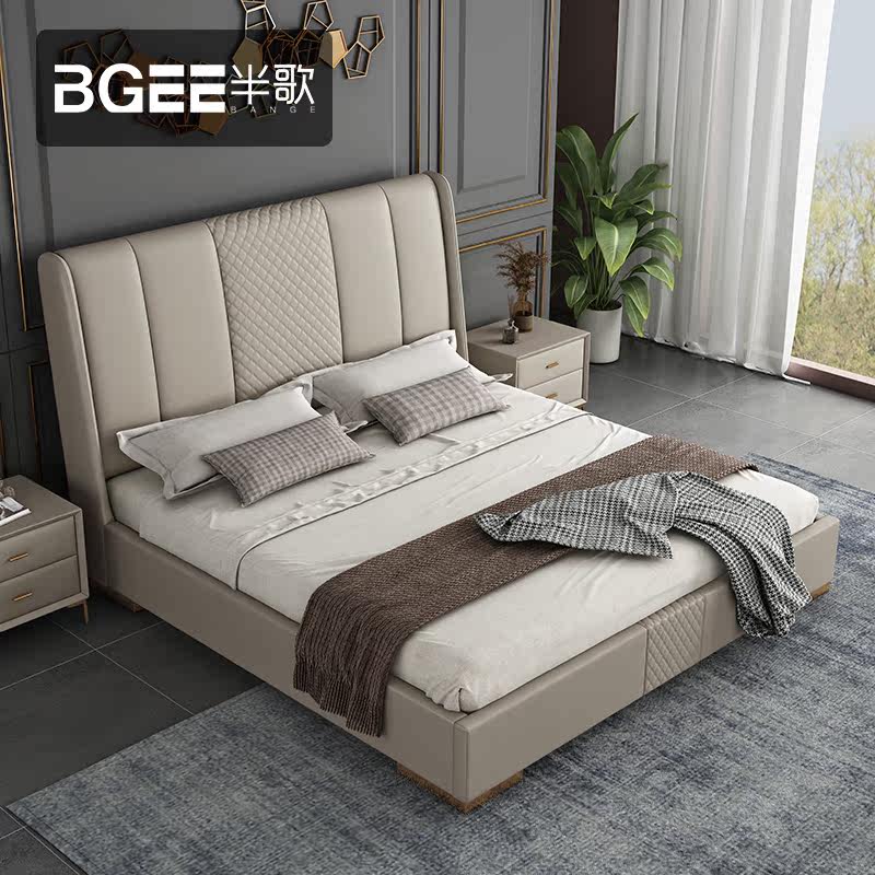 Half-song-style minimalist leather bed Twin Beds 1 8m Light Lavish Bed Wedding Modern Minima Nordic Bed Master Bedroom Soft Bed