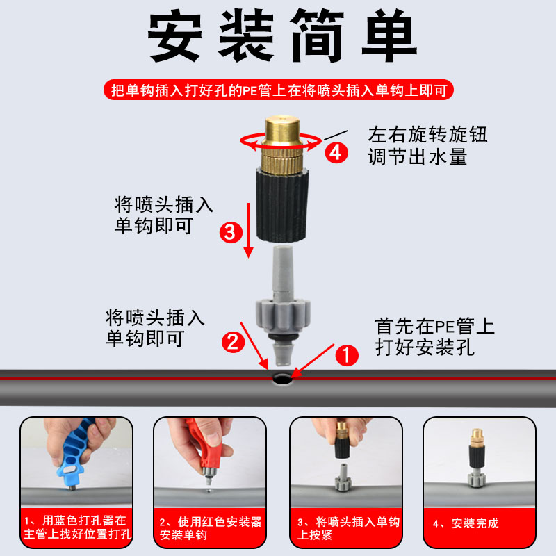 New material pe pipe 16mm 10 meters 10 adjustable copper nozzle spray set (without filter) new material pe pipe 16mm 10 meters 10 adjustable copper nozzle spray set