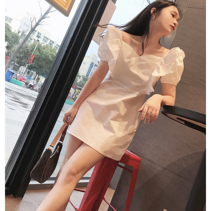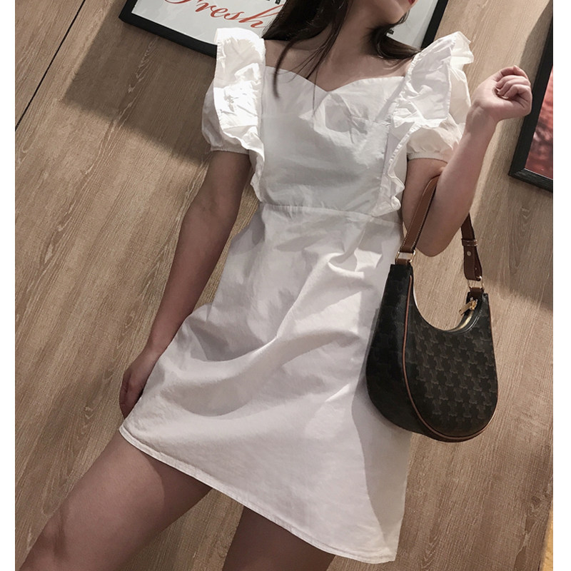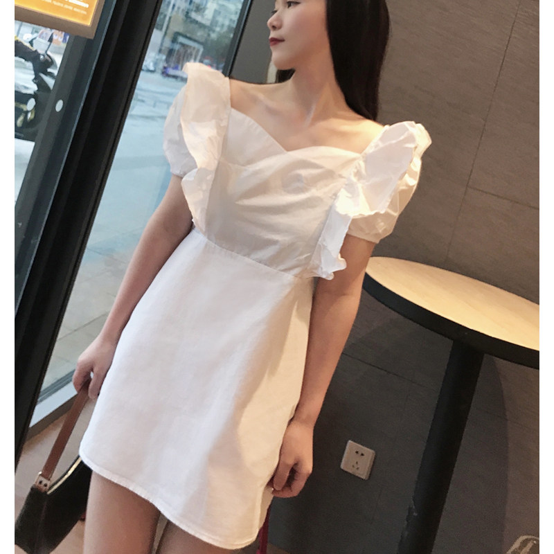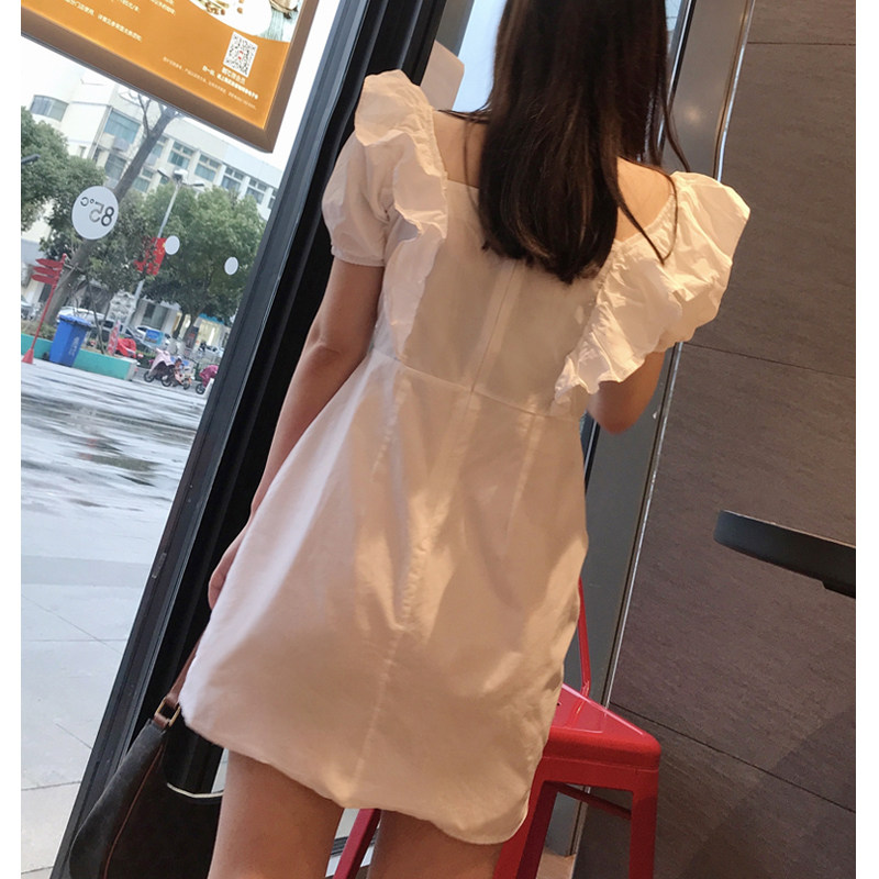Small ruffled dress women White 2021 summer new fashion foreign style light mature style short skirt