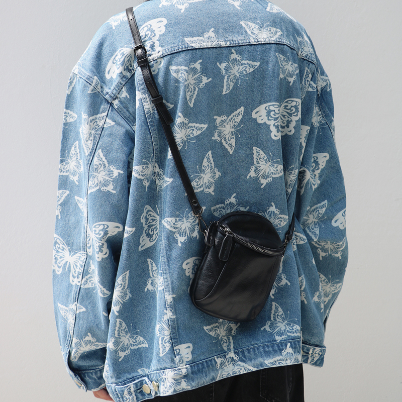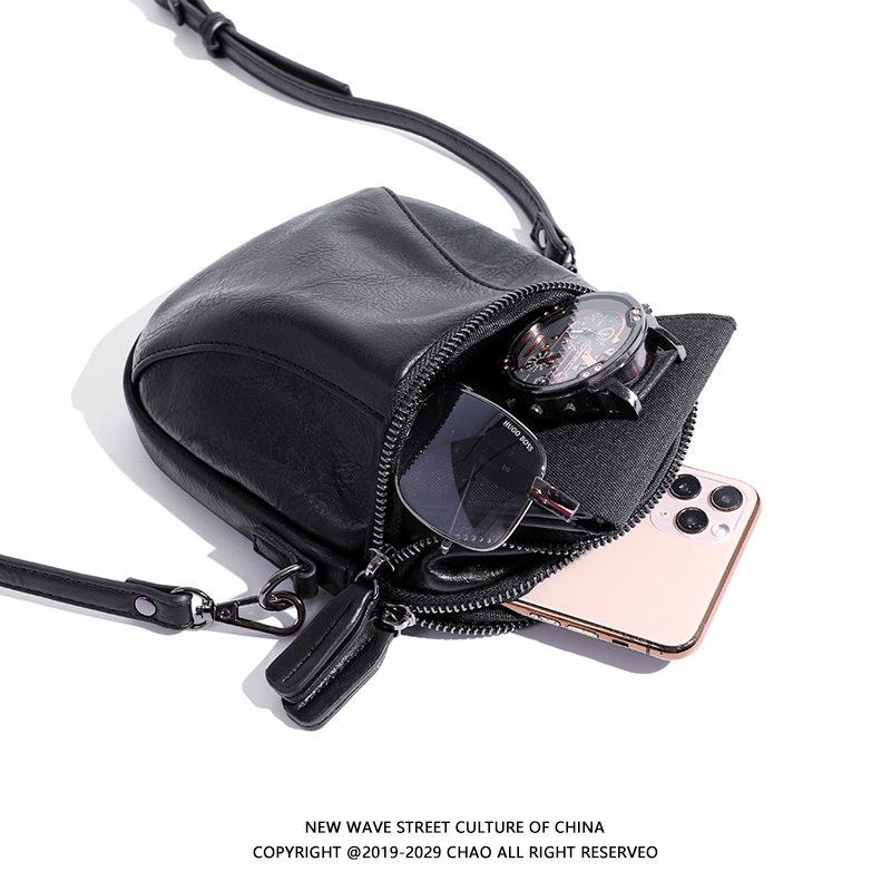 Men's Bags Mini Horseshoe Bags Sheepskin Small Bags Japanese Casual Crossbody Bags Leather Shoulder Bags Vertical Mobile Phone Bags Trendy