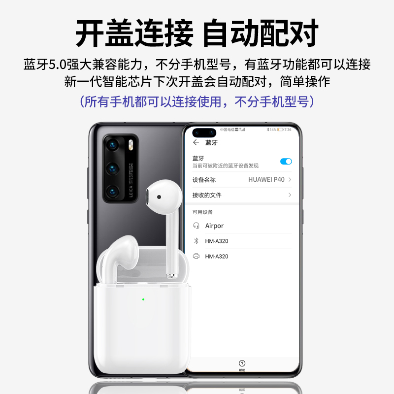 Bluetooth headphones true wireless applicable Huawei p40 binaural 2021 new p30 original fit mate40 high end nova7p glory pro high sound quality lady's big power noise reduction officer net