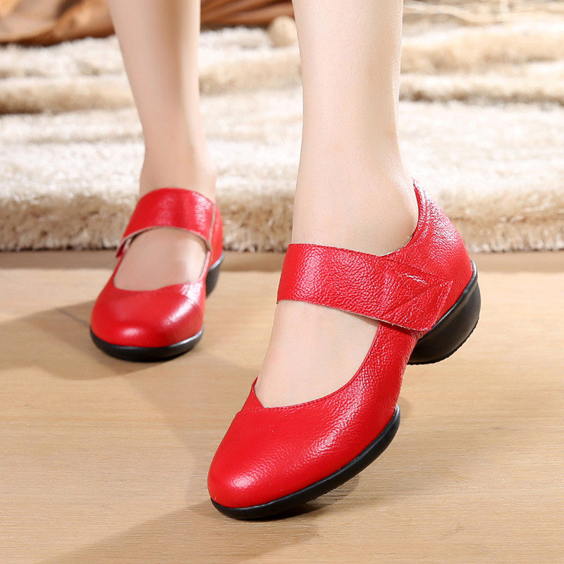 First layer cowhide dance shoes women's middle-aged and elderly dance shoes handmade square dance shoes soft bottom mid-heel fitness shoes