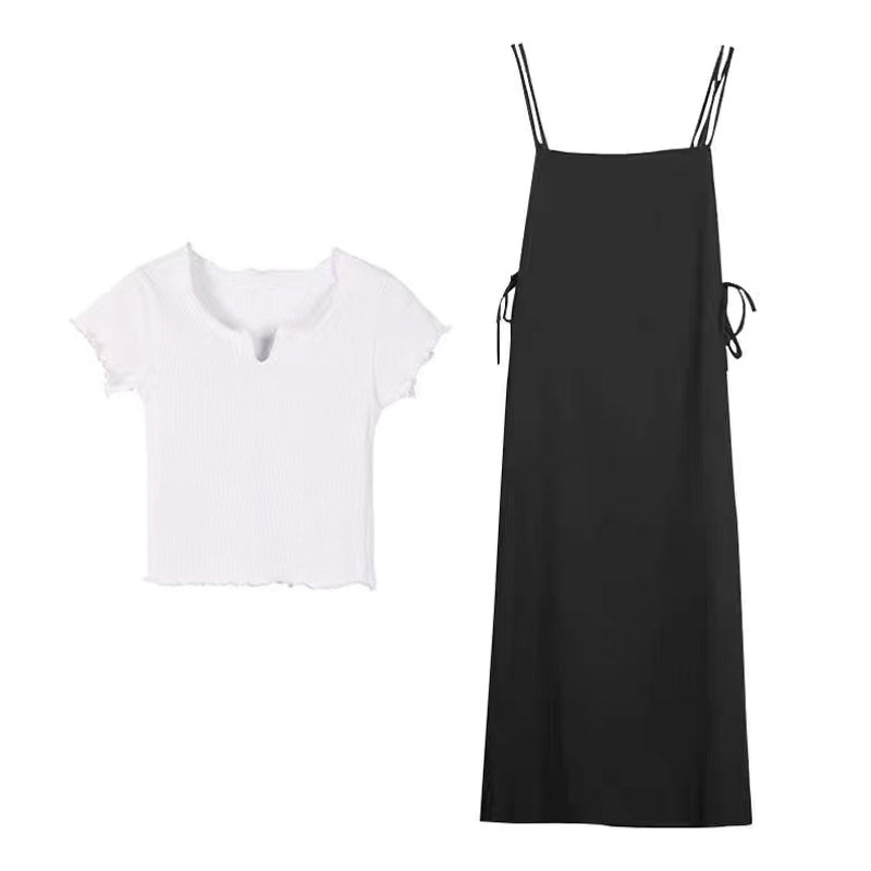 French skirt dress female summer thin skirt temperament hanging skirt two pieces of dress