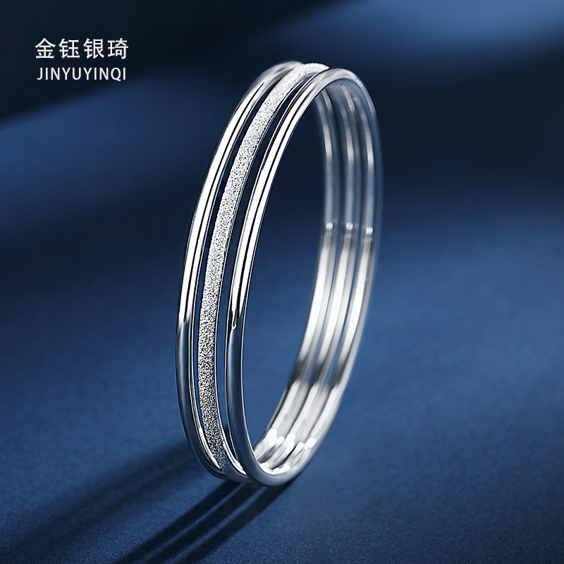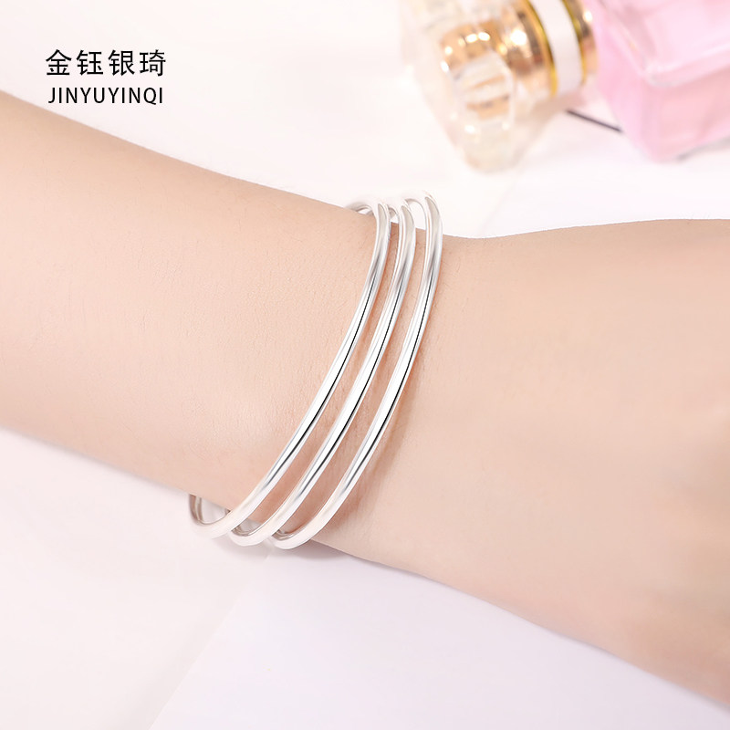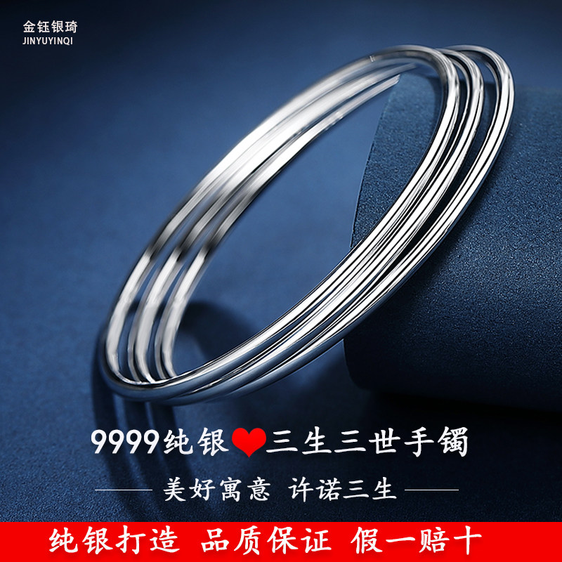 Sansheng III silver bracelet female 9999 sterling silver young three-circle silver jewelry to send girlfriend foot silver solid silver bracelet