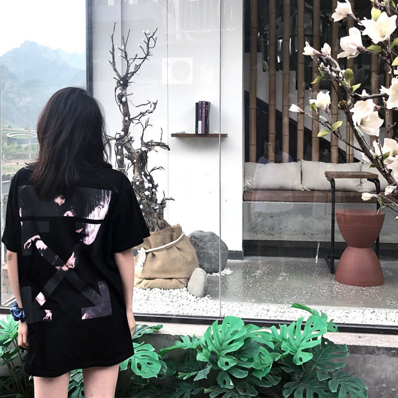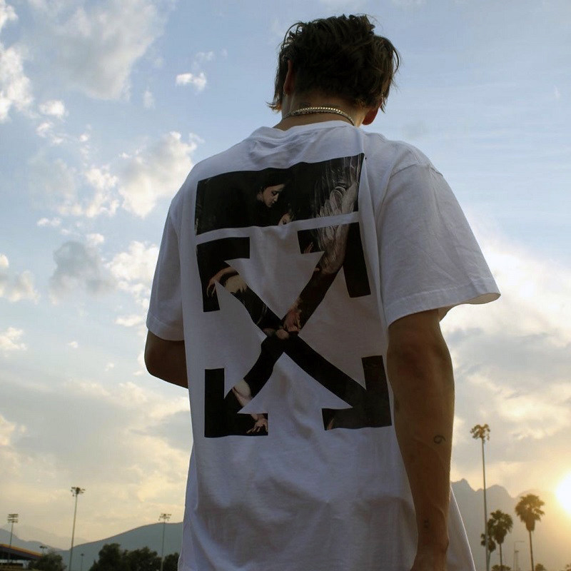 Vicxx produces OW style religious angel arrow printing tide brand hip hop loose couple round neck short sleeve T-shirt men