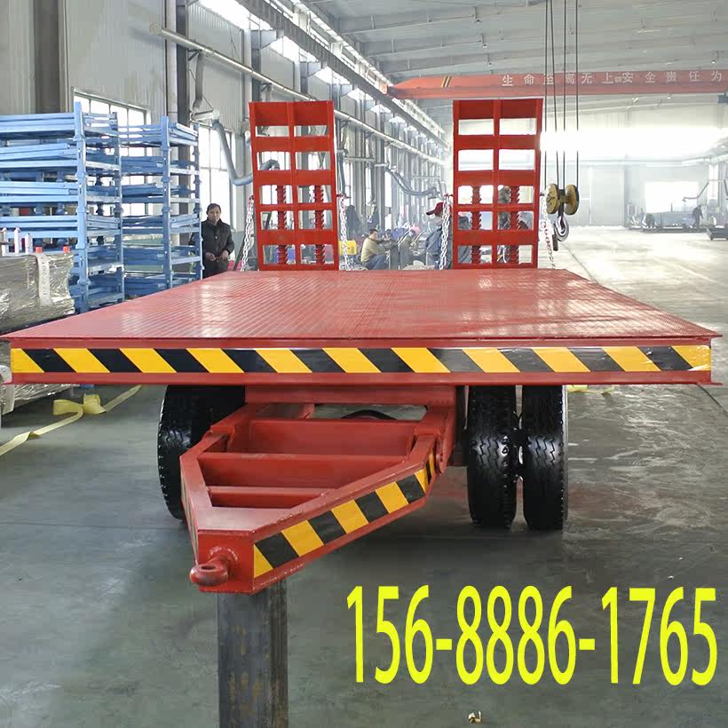 Henan traction flatbed heavy-duty handling trolley four-wheel steering stacker rear hanging iron plate pallet factory turnover vehicle