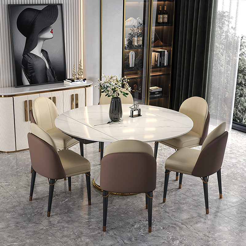 Rock plate dining table Household small household type rotary telescopic radius dual-use dining table Modern simple folding dining table and chair combination
