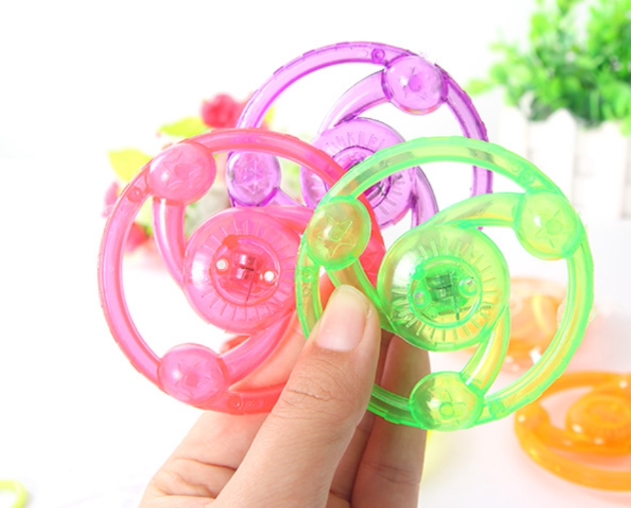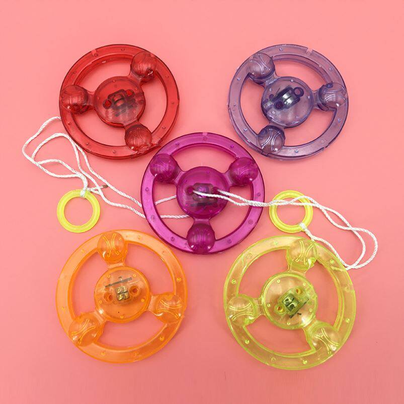 80 - post nostalgia toy flash pull line flywheel round blue frog wind wheel glow children's toy gift