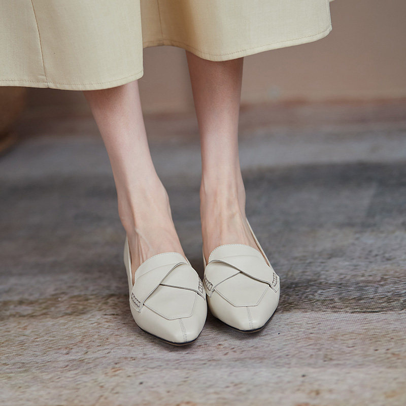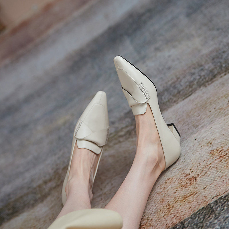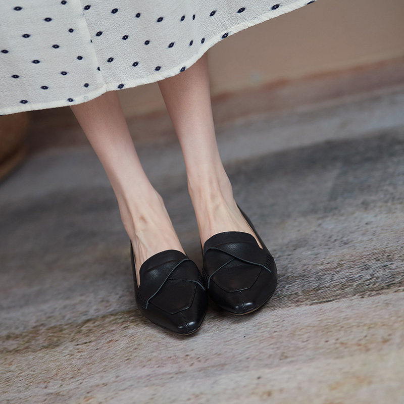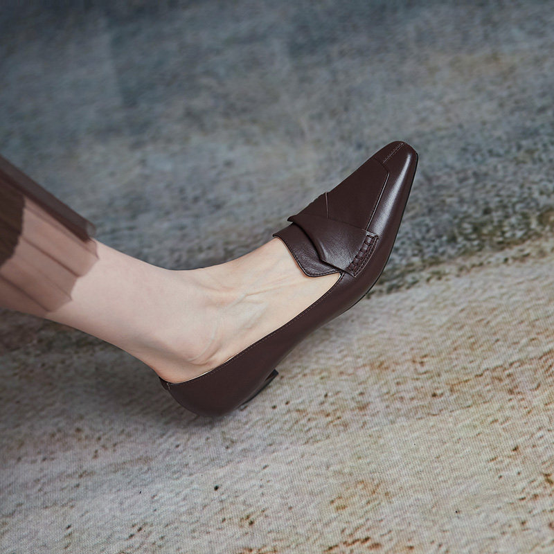 Givenivan Sammy art Fan ~ genuine leather 100 lapped with small square head shoes woman 2022 new low crude heel 2 5cm