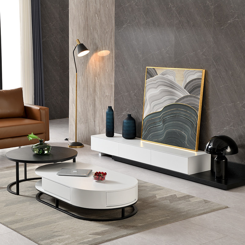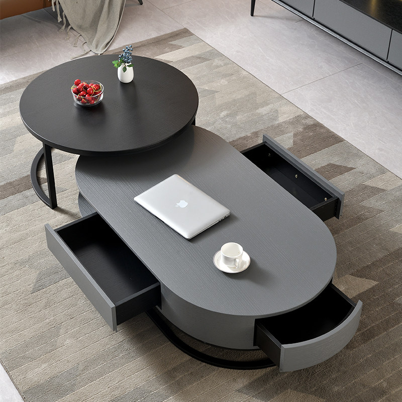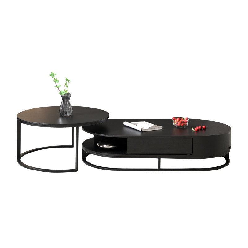 Simple modern oval coffee table Nordic light luxury size apartment oval tea table round iron coffee table black