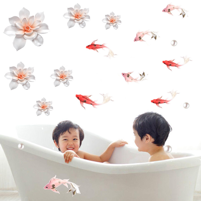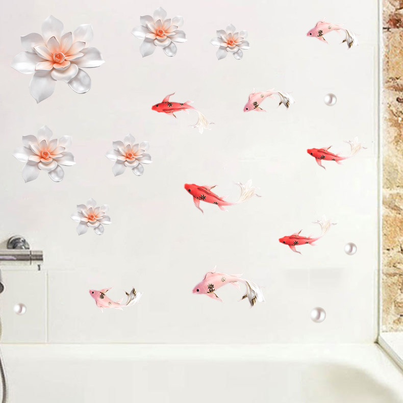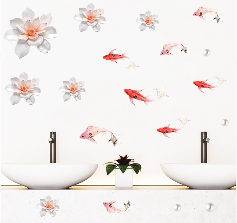 Makeup Room Bathroom self-adhesive waterproof Ugly Fill Hole Wall wall Painting Creative Carp Lotus Room Decorated Wall Stickers