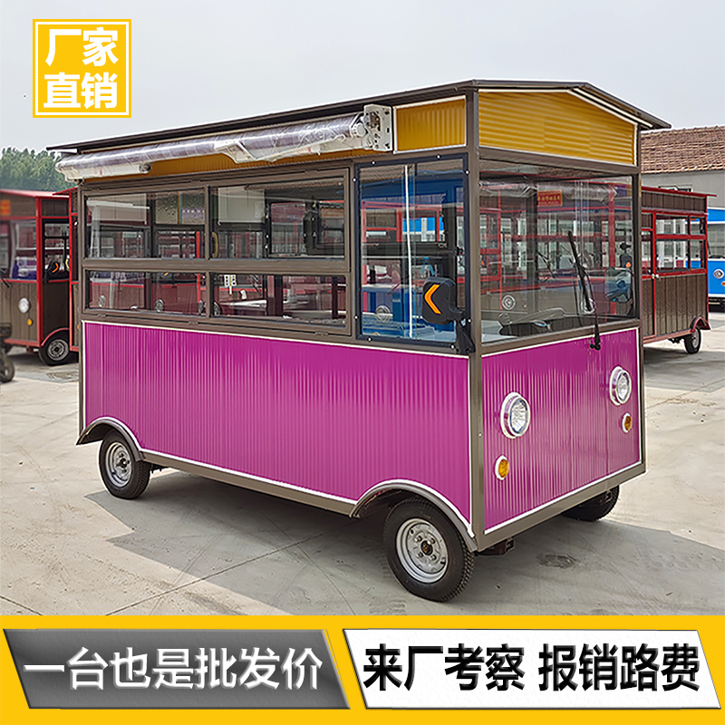 Multifunctional snack truck, RV hand push electric four-wheel mobile stall, barbecue, fried skewers, commercial breakfast truck food