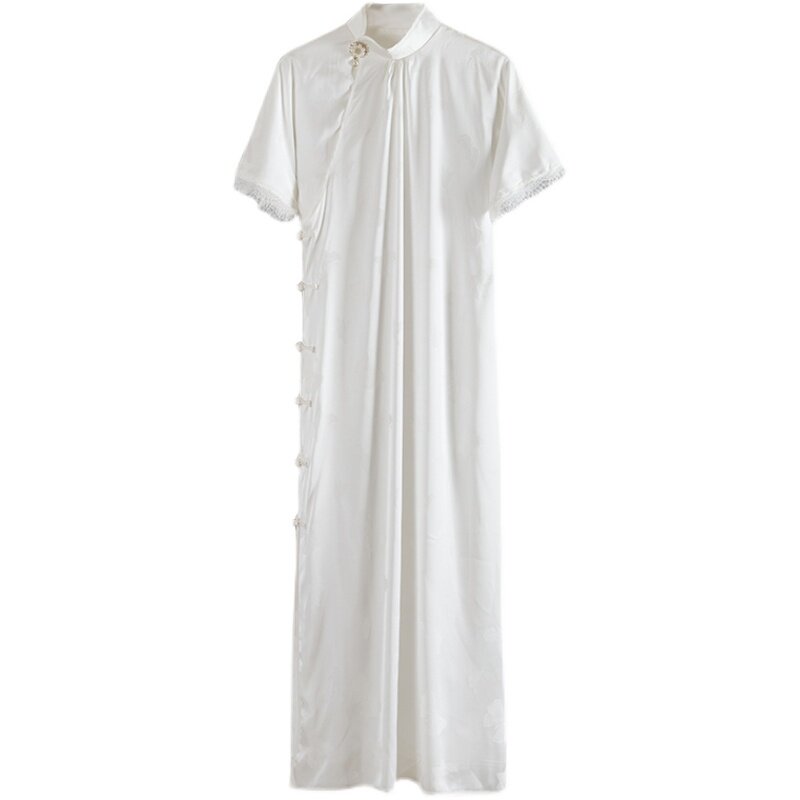 Republic of China style qipao tea dress Tang dress women Chinese literary and artistic women's clothing young style ancient style disc buckle dress summer dress short sleeves