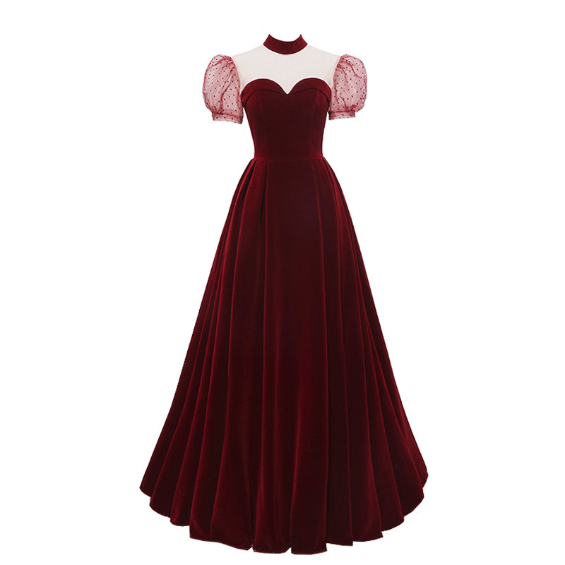 On the run princess toast dress velvet engagement dress 2021 new slim fit bride wedding puff sleeve evening dress