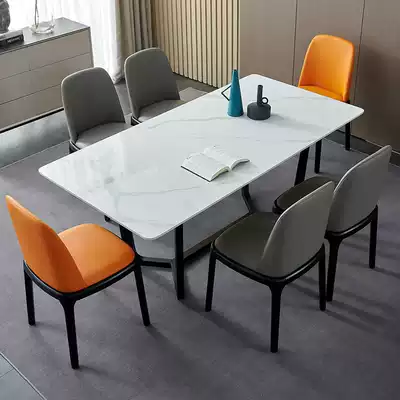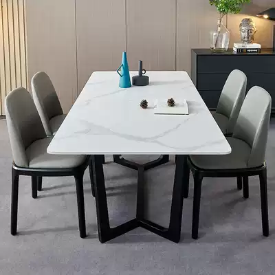 Italian rock board table modern simple imported rectangular solid wood frame minimalist natural luxury stone dining table and chair combination