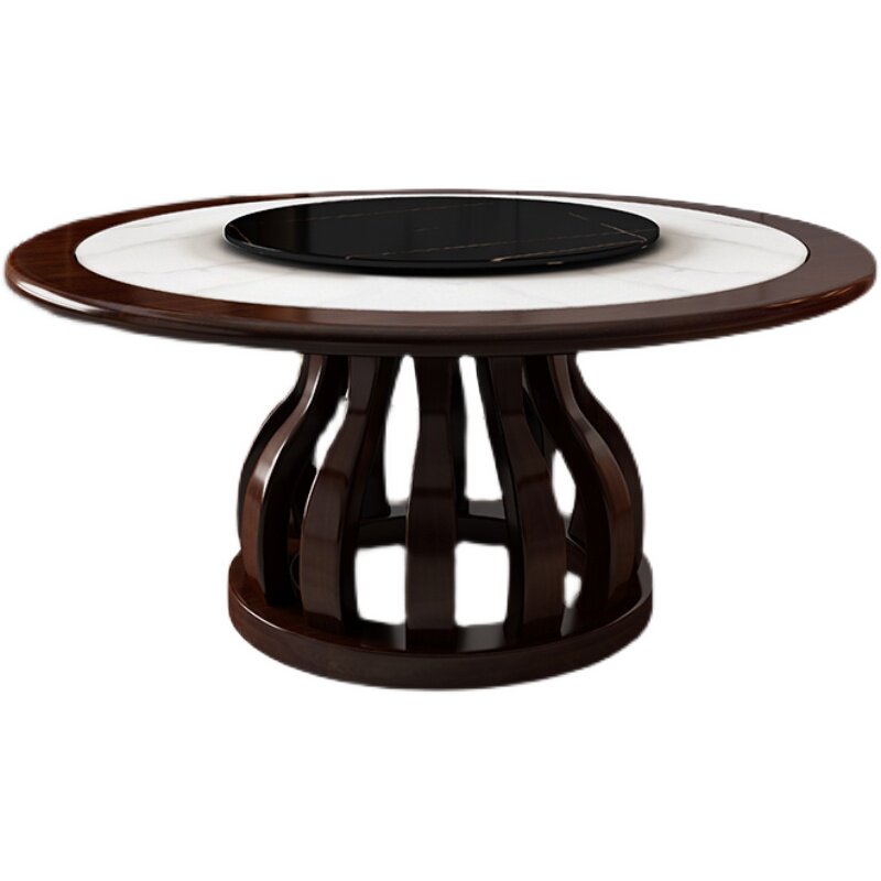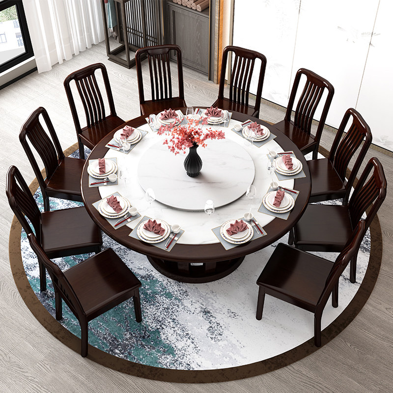 New Chinese rock plate dining table and chairs combined solid wood round table with turntable 1 8 m 8 people 10 people home Chinese dining table-Taobao