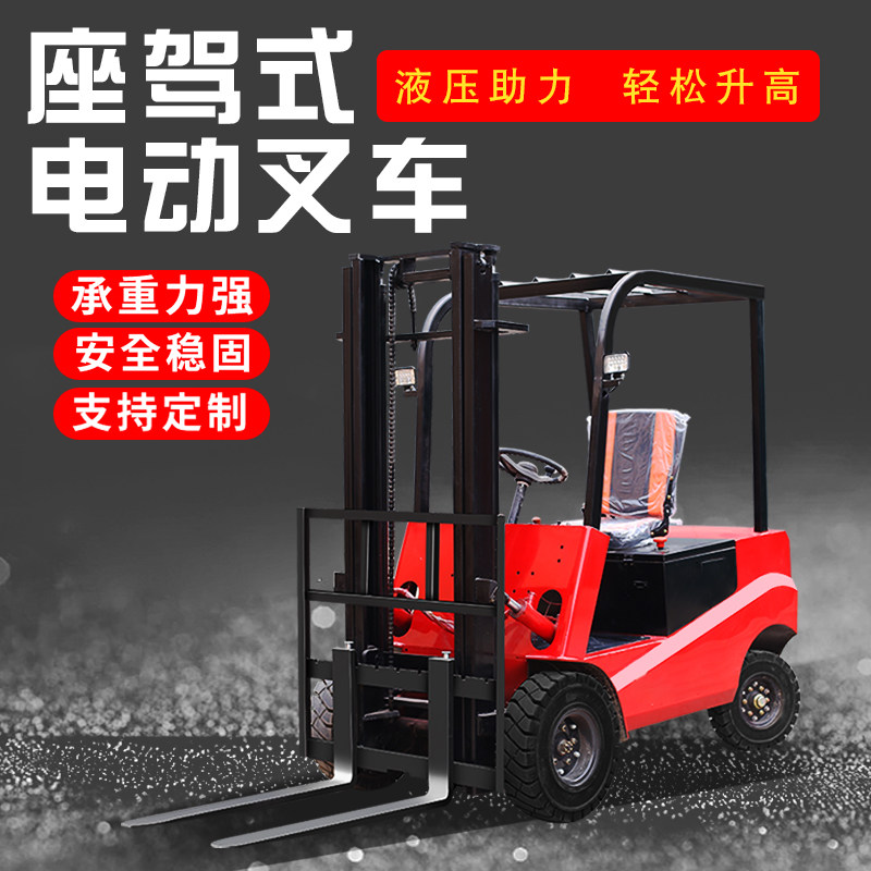Electric pile high machine 2 ton 3 ton small four-wheel seat driving style porter 1 ton electric pile high hydraulic loading and unloading stacking high machine