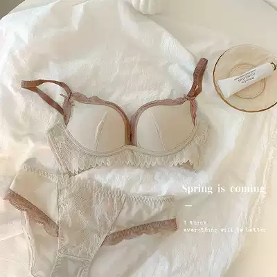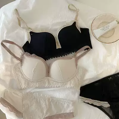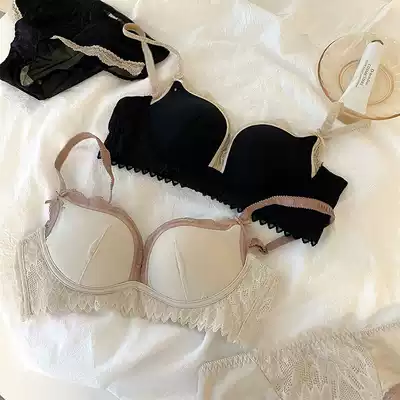 French no steel ring latex small chest gathered women's underwear on the collection of auxiliary milk anti-sagging adjustment underwear set