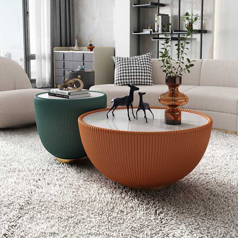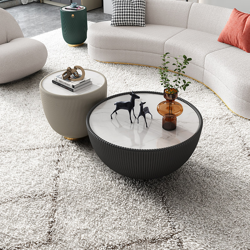 Light luxury tea table post-modern simple Italian creative round rock slab Hong Kong style minimalist tea table designer style furniture