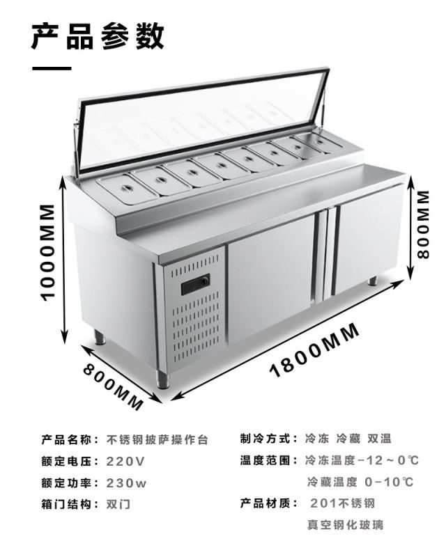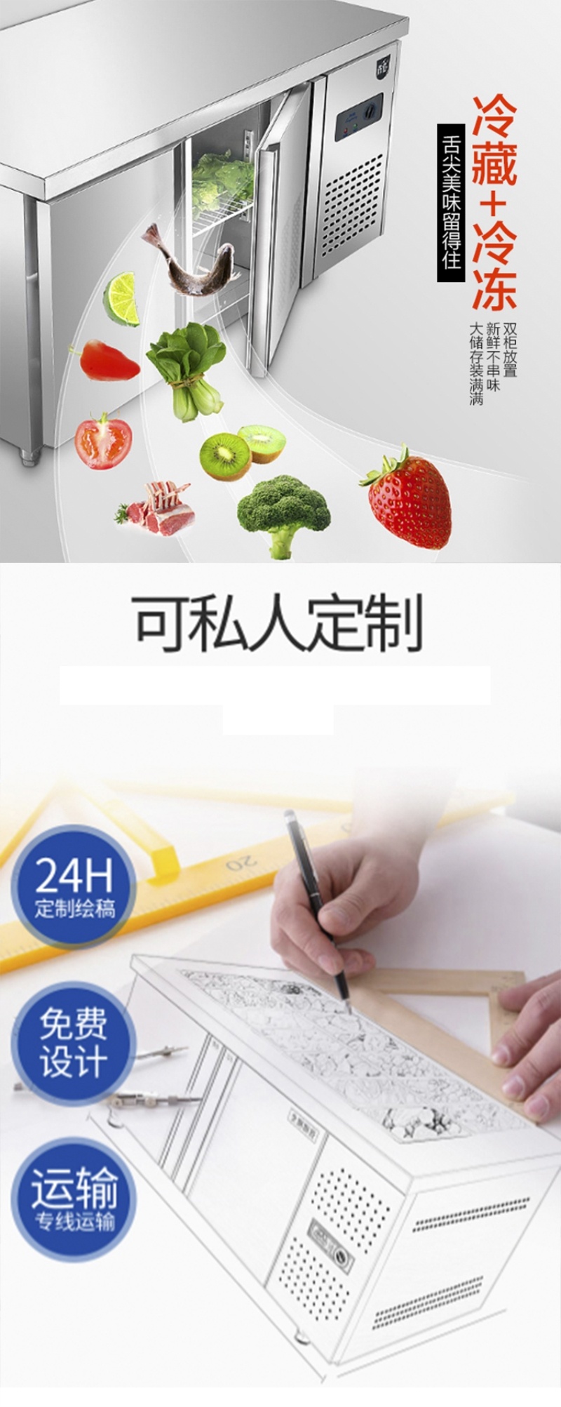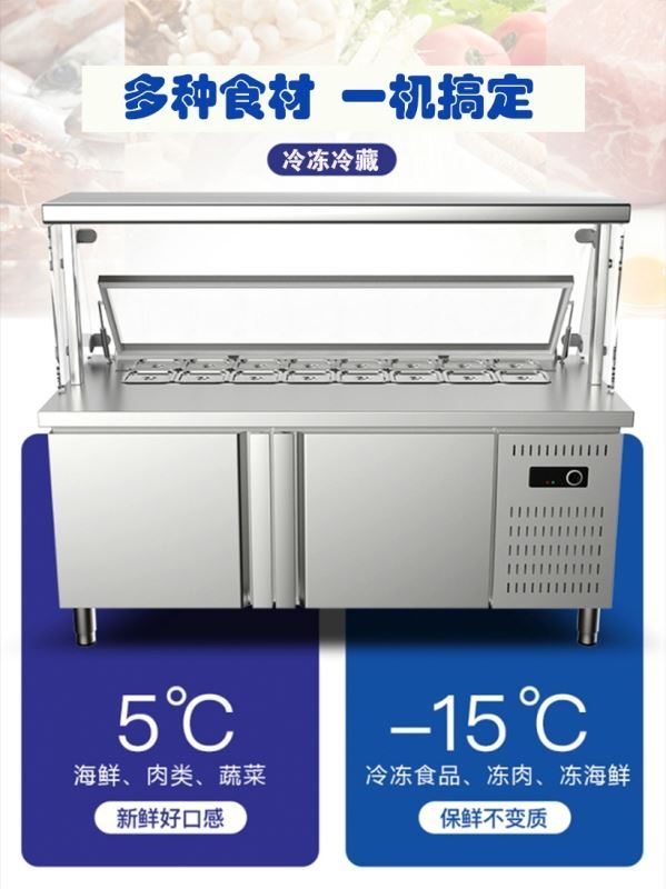 Can customize several styles of small vegetable sprinkle water bar with commercial grooving salad pizza Pizza Freshness cabinet Ice cabinet Operating table