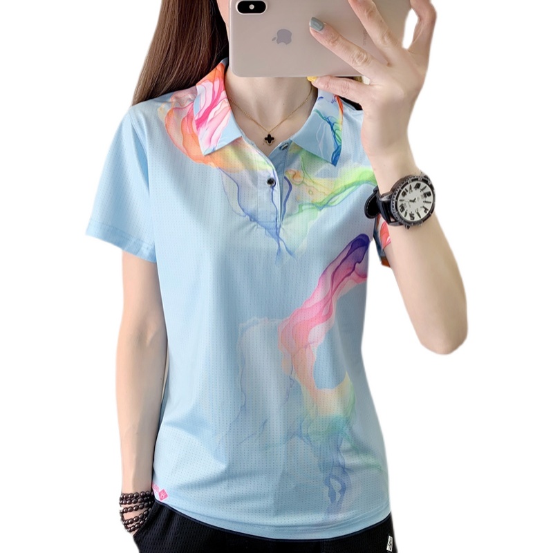 Chinese style polo shirt quick-drying women's T-shirt stretch light outdoor breathable lapel short-sleeved running quick-drying top