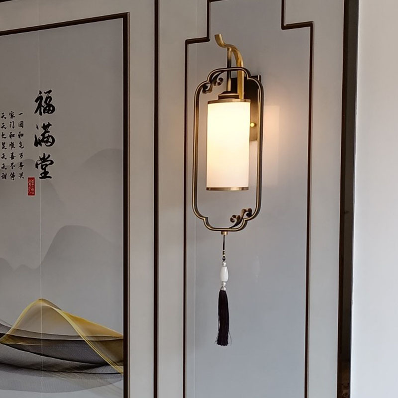 Pinlijia new Chinese style full copper wall lamp living room background wall Chinese style bedroom bedside luxury aisle lamp glass