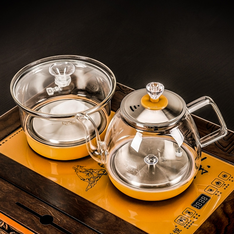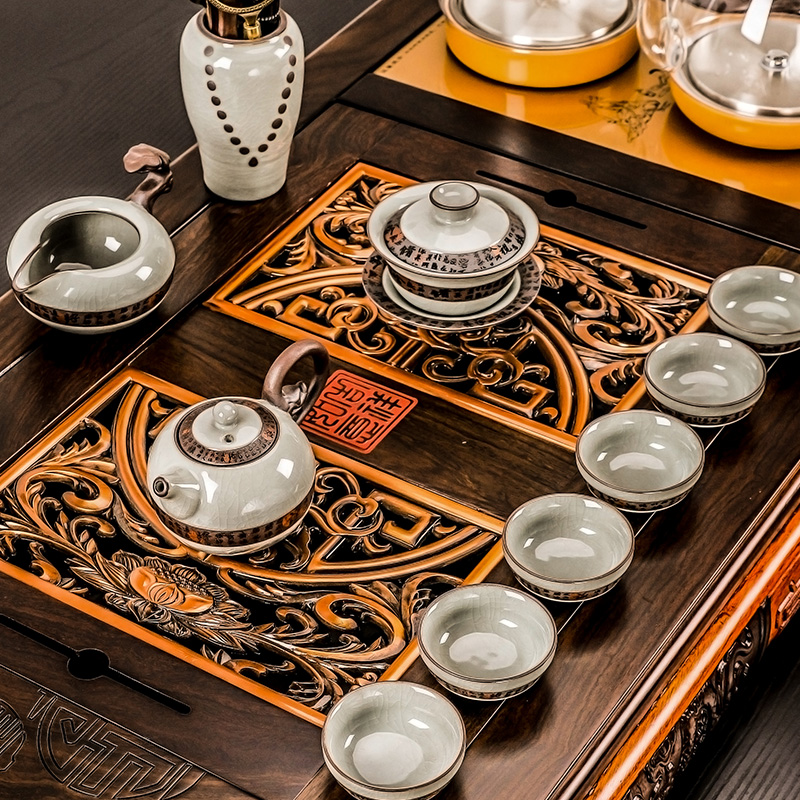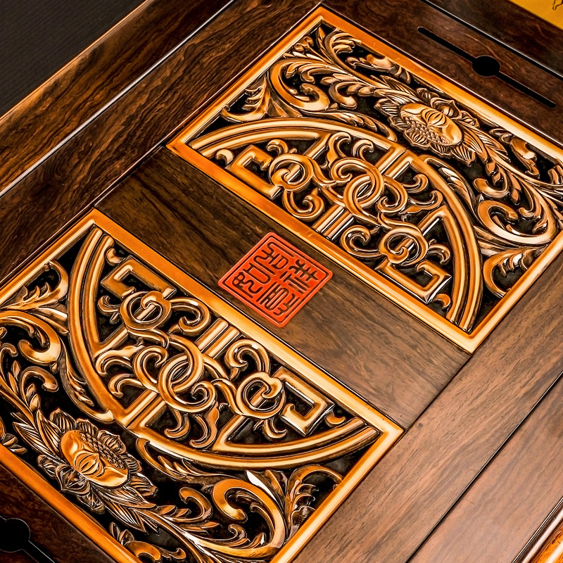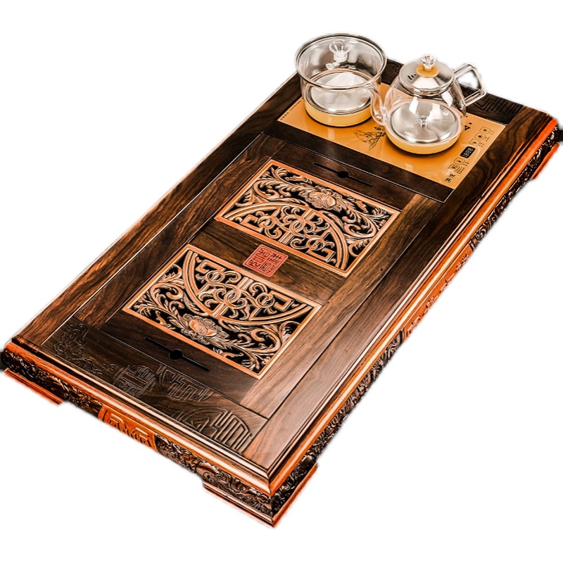 Black Sandalwood Solid Wood Tea Pongfu Tea Furniture Set Group Home Office Fine Sculpture Tea Table Full Automatic Bottom Water Delivery Courtesy