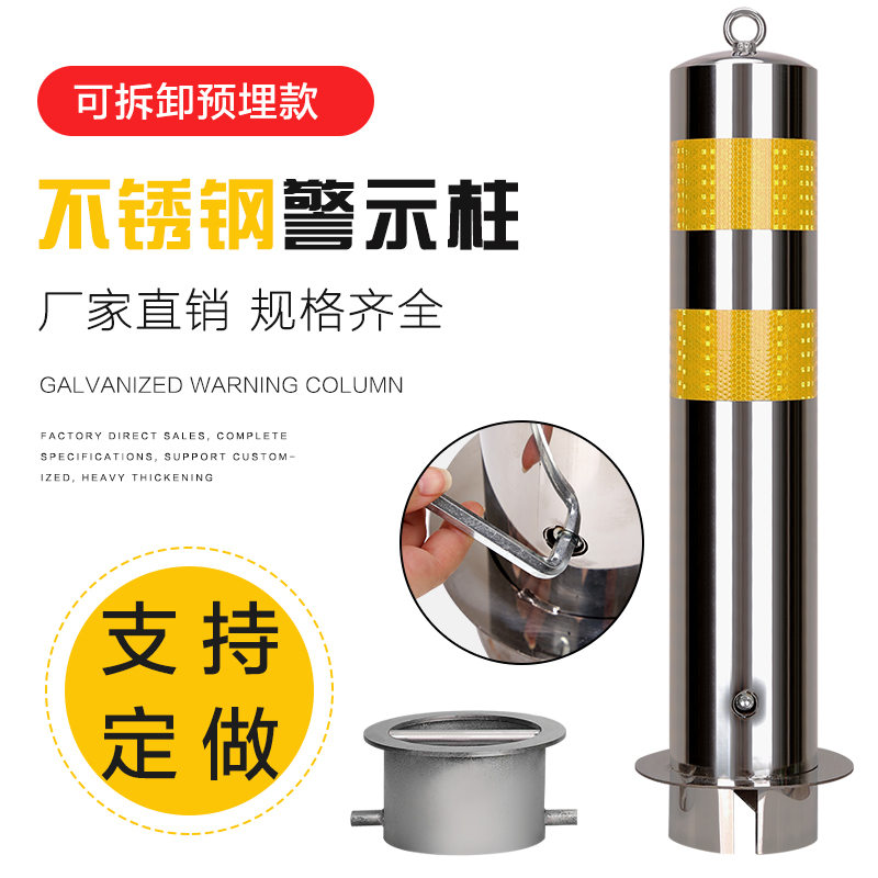 Anti-parking movable column Stainless steel 50 accessories material outdoor parking removal warning pile Reflective warning column