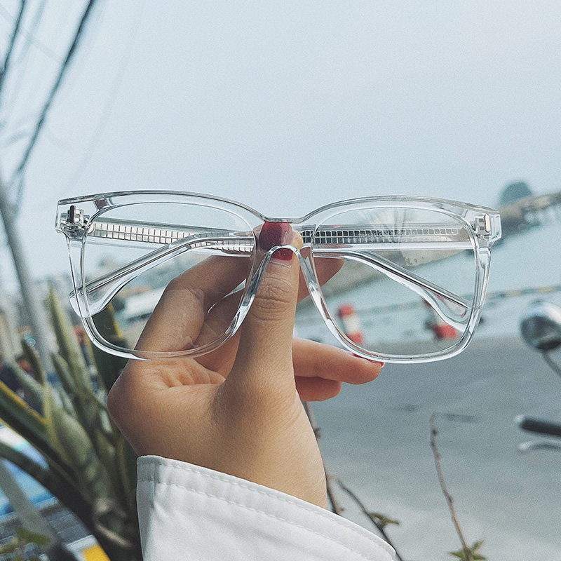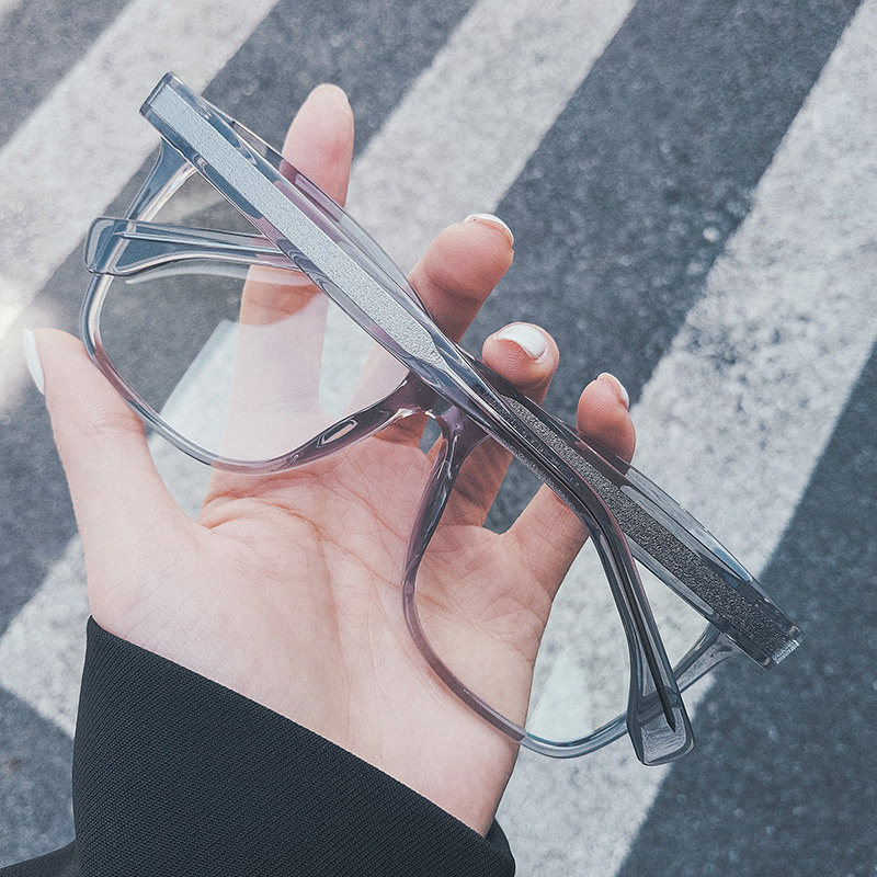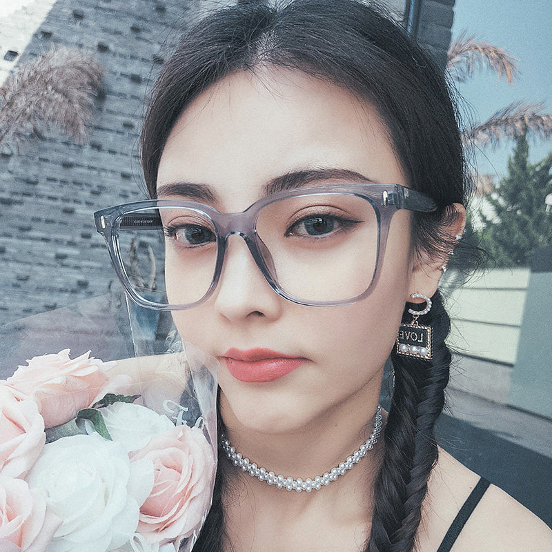 Small red book foggy grey blue transparent temperament big frame glasses female Han version round face vegan skinny BAO WEN Near-lens man