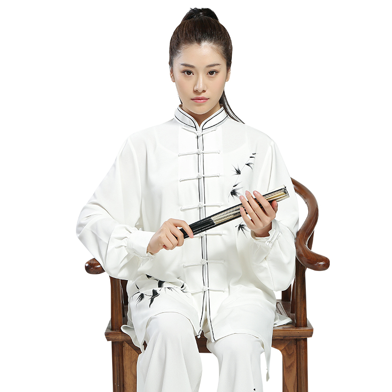 Boxing Friends Association hand-painted Tai Chi clothing female high-end elegant white martial arts performance clothing Tai Chi practice clothing spring, summer and summer suit