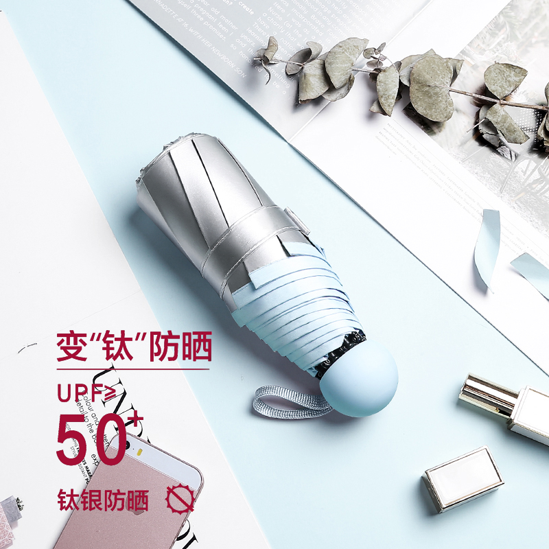Sun umbrella female sunscreen Anti-UV shading umbrella Dual-use Titanium Silver Mini Five Fold Super Light And Small Portable-Taobao