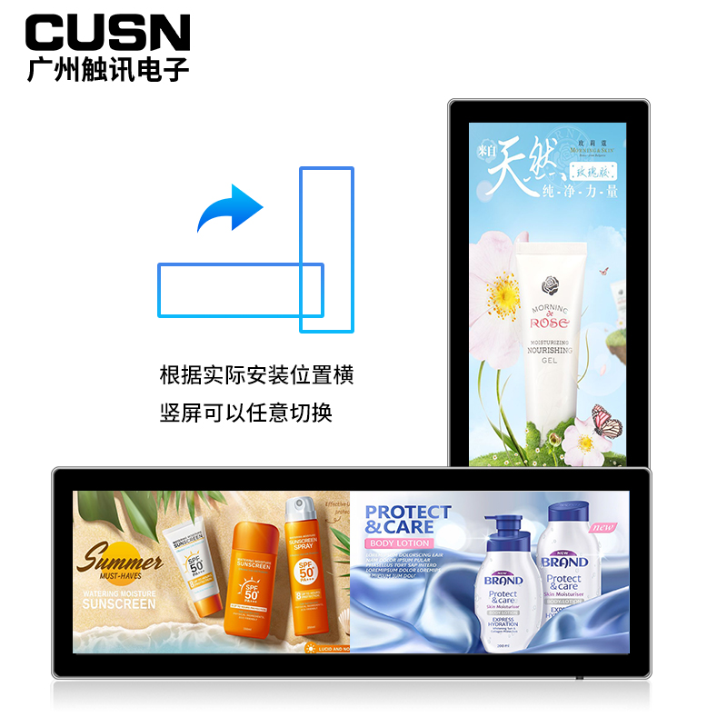 CUSN touch bar screen advertising machine bus subway network player LCD display intelligent poster screen milk tea shop wall hang long LCD touch Android one machine