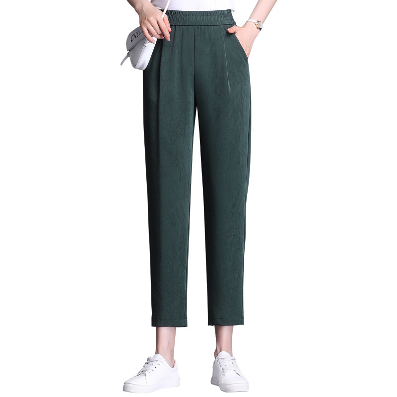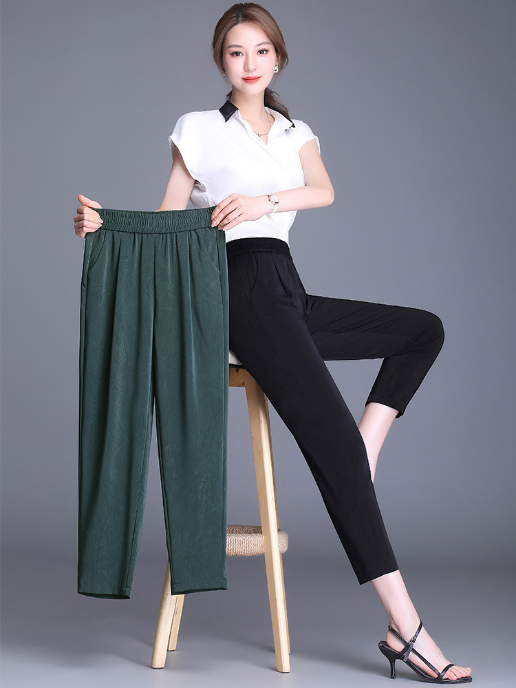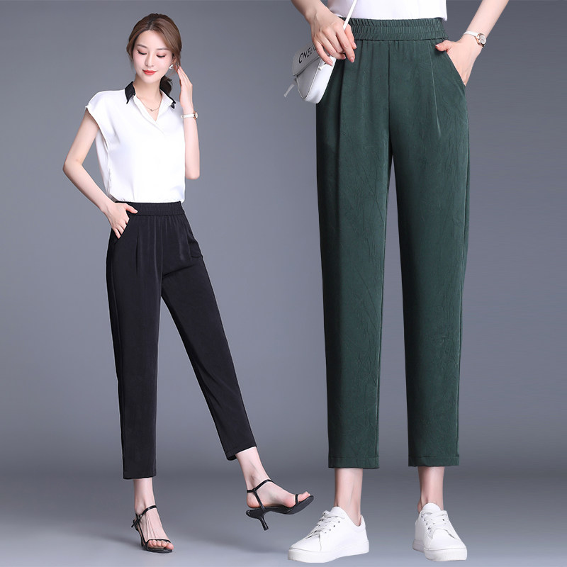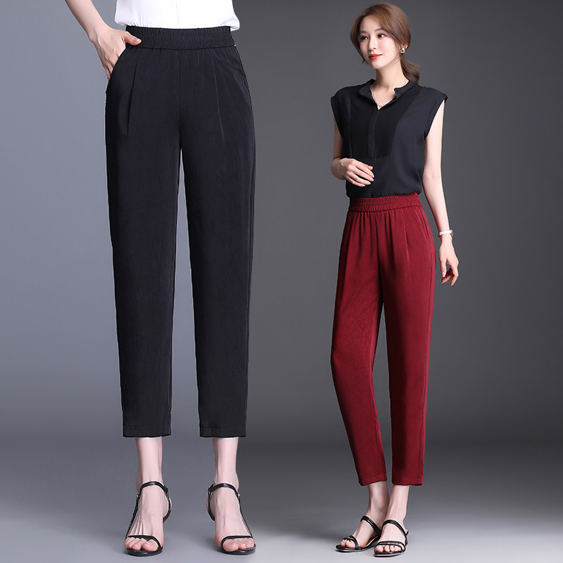 New middle-aged silk Haren pants 2021 summer thin elastic waist casual straight ankle-length pants women