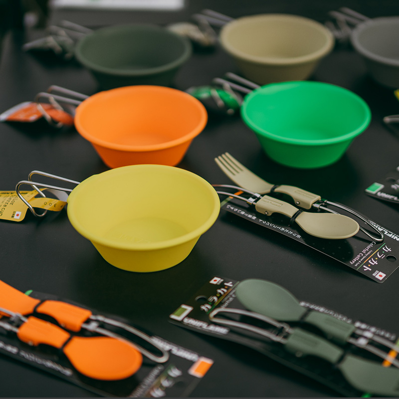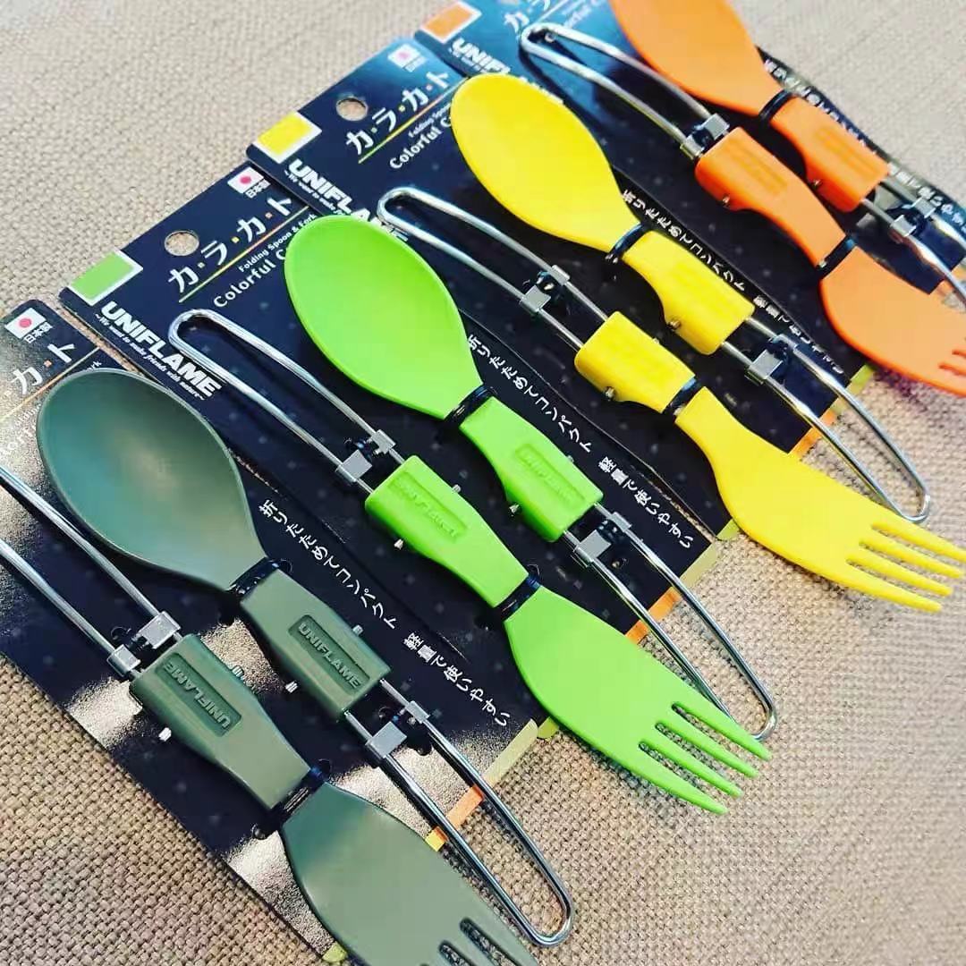 Japan UNIFLAME camping outdoor portable multi color campsite cutlery combined folding fork spoon containing