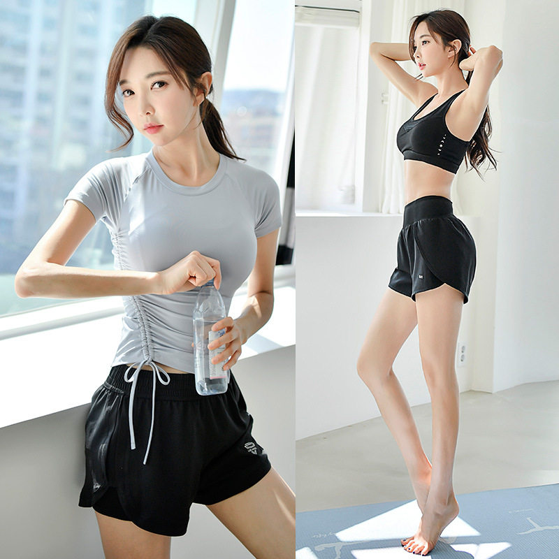 HCNTES Light Extravagant Brands Yoga Clothes Women's Summer New 2021 Short Sleeve Sports Running Honey Peach Hip Fitness Suit