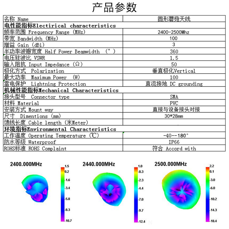 Waterproof IP67 Explosion-proof 2 4g Antenna Mushroom Head zigbee Antenna Bluetooth Receiving wifi Module Antenna Gain