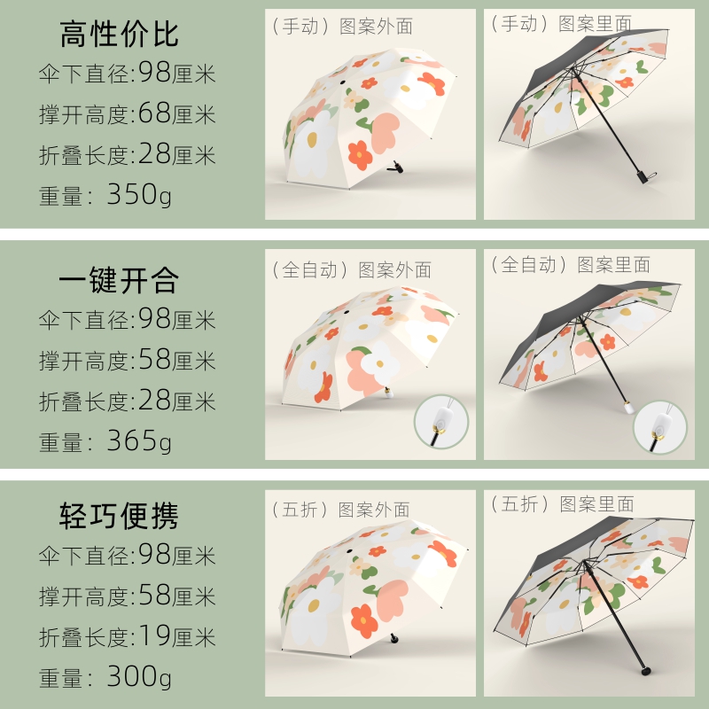 Manual-Three-Flower Outside of the Pattern Manual-Three-Down-Flower (inside) Five-fold umbrella-Flower Outside of the Pattern Fully Automatic-Three-Flower (inside the pattern) Fully Automatic