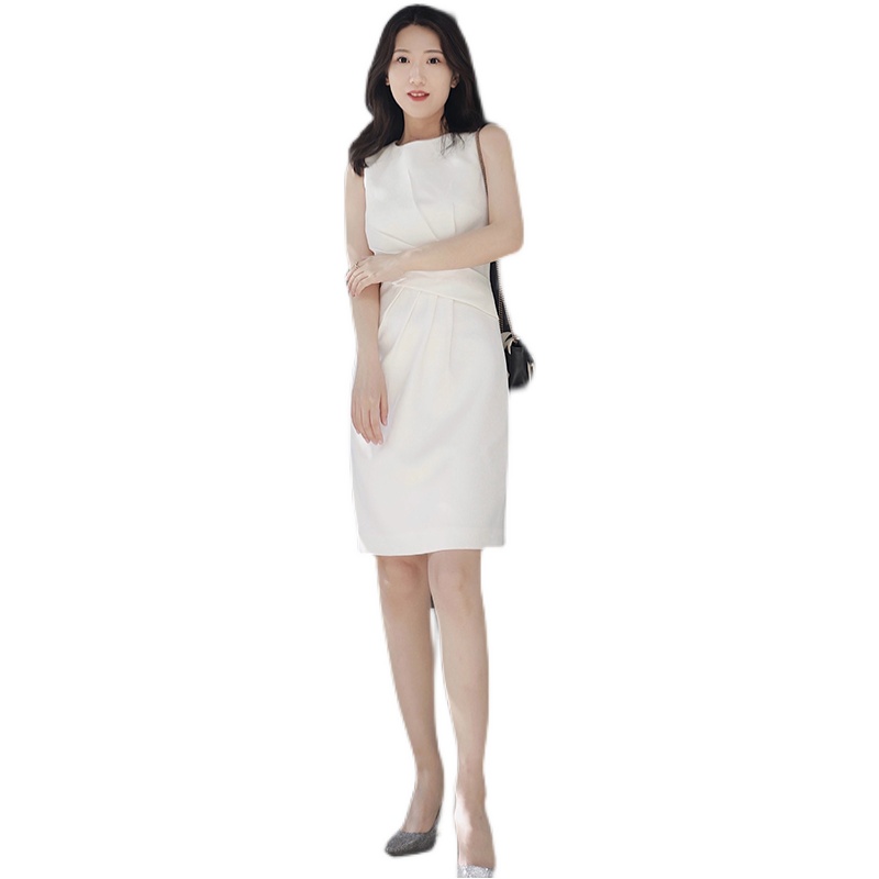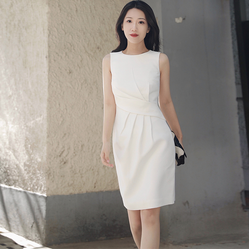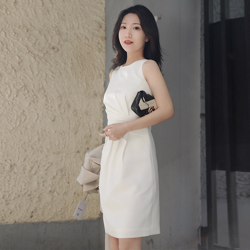 2022 summer new sleeveless white dress female temperament professional OL waist slimming simple fashion one-step skirt