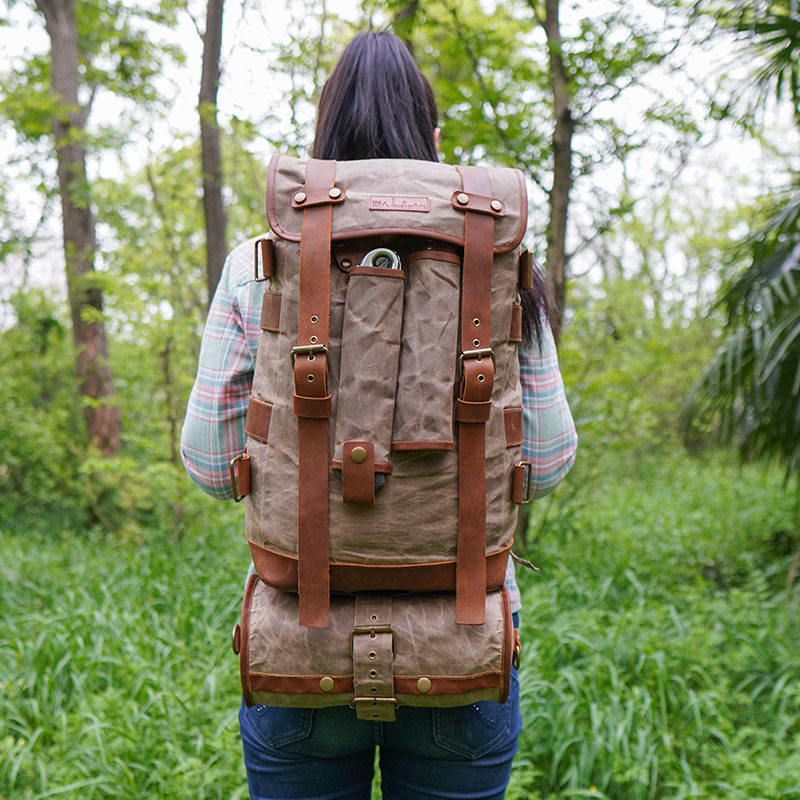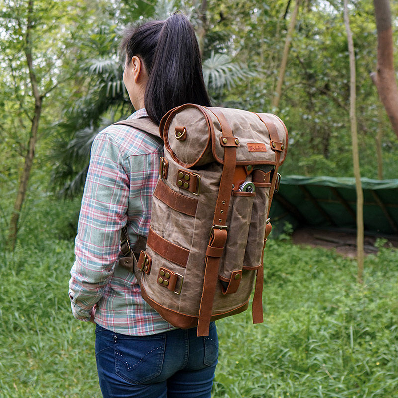 bushcraft outdoor camping single shoulder waterproof slanted satchel canvas Bull Leather Retro Casual Bag Hang containing bag