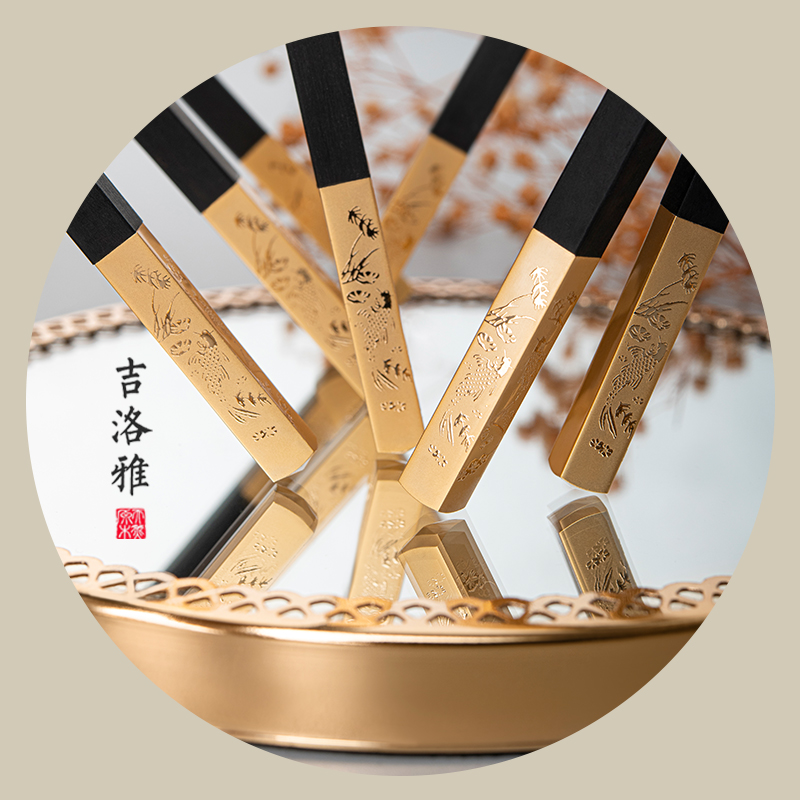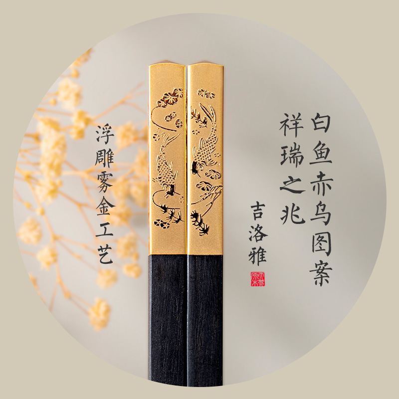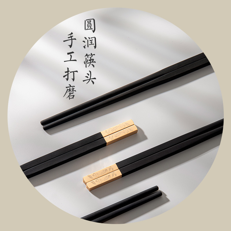 Jiluoya embossed fog gold ebony chopsticks natural solid wood ebony household Chinese single and double high-end gift box chopsticks