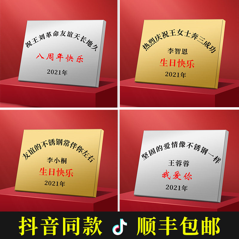 Net Red Birthday Gift Friendship Stainless Steel Plaque Love Confession Company Advertising Bronze House Plate Customized