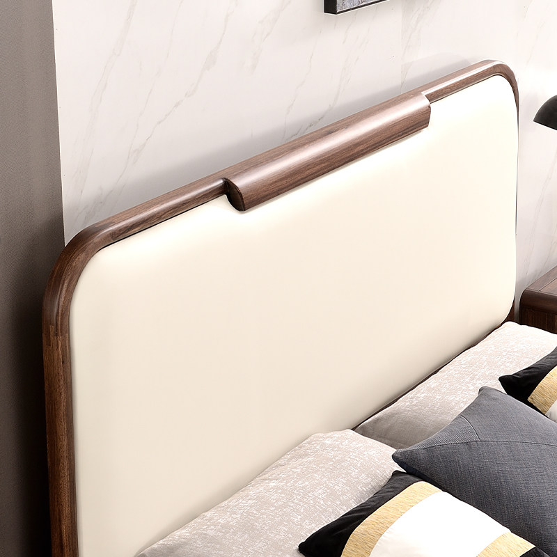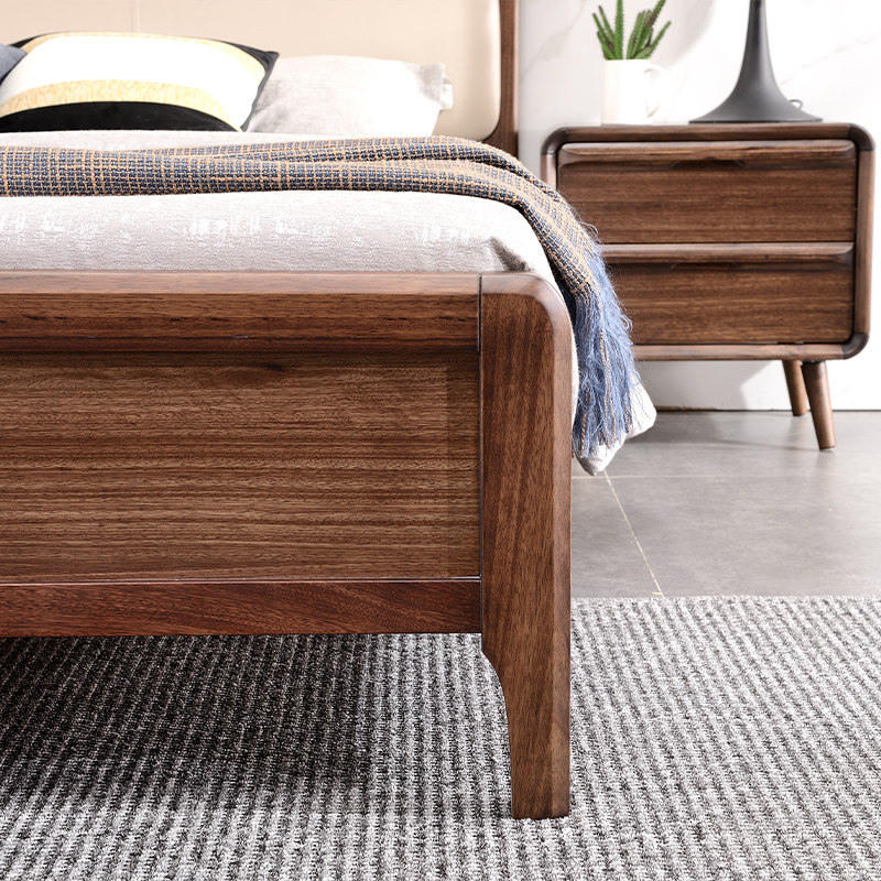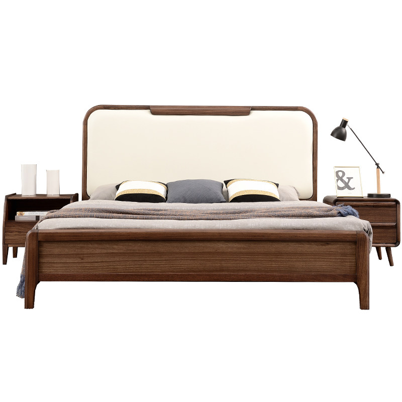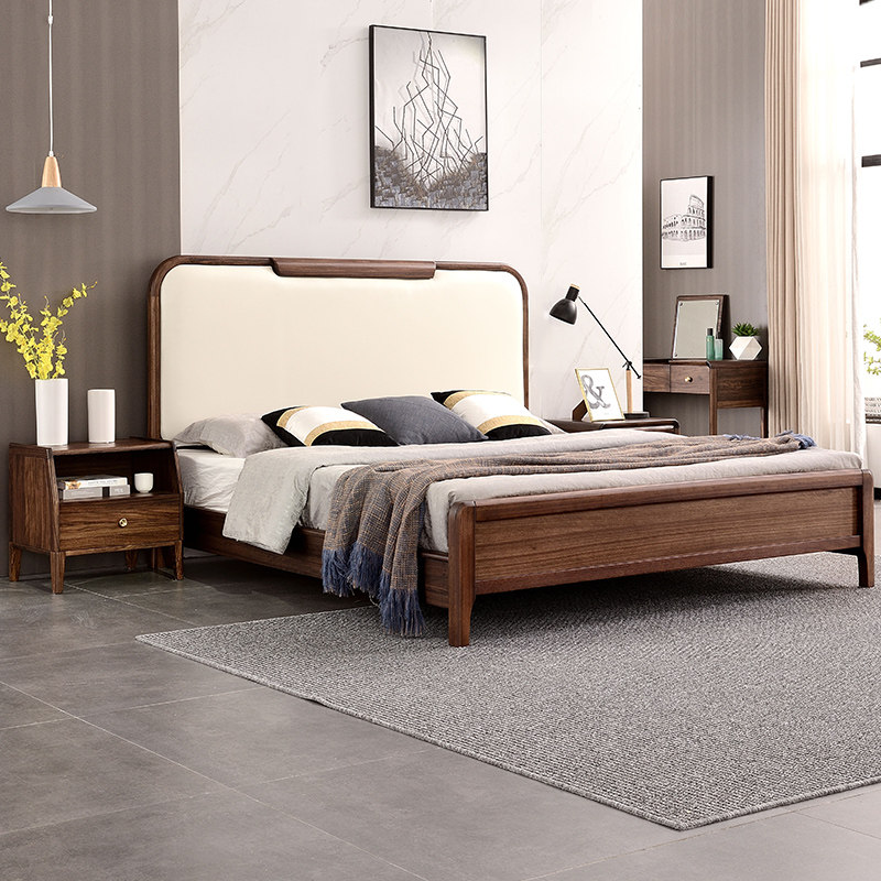 Italian light luxury bed all solid wood 1 8m double bed minimalist modern bedroom wedding bed log ebony wood leather bed