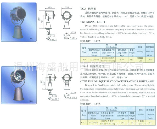 Taihang marine throw light TG3 remote intense light high-power 1000W waterproof signal rotary searchlight spot