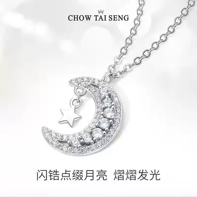 Zhou Dai Sheng Moon star necklace female sterling silver choker does not fade light luxury niche design sense new silver jewelry
