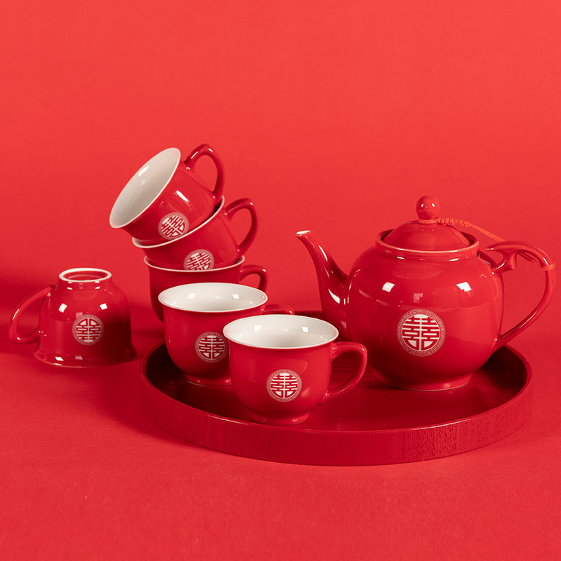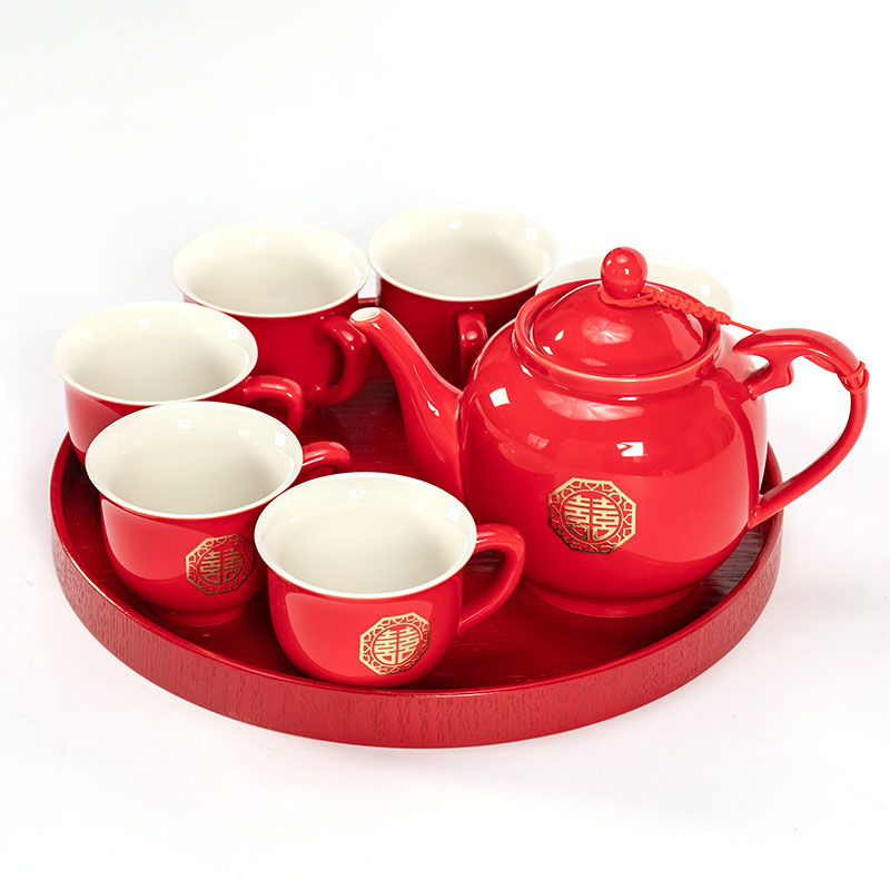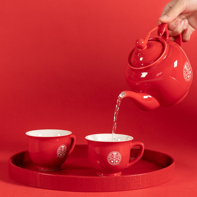 Round Festive Sketch Gold One Pot of Six Nations Twin Festive Teapot (580ml) Big Dragon Feng Joy One Pot of six Cups Twin Delight One Pot of Six Nations Gift Box Round the Festive Red Ear Cup single round Festive Sketch gold