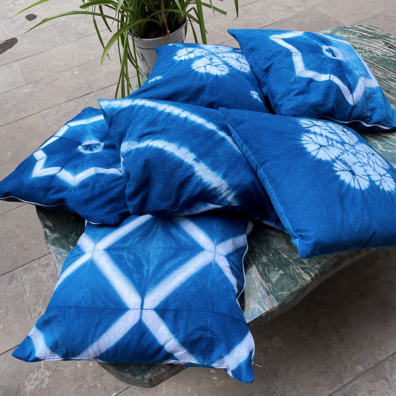 Original Featured New Handmade Blue Dye Hug Pillow Cover Vegetal Grass Wood Dyeing Cushion Pure Cotton Pillowcase Pillow Core Fabric