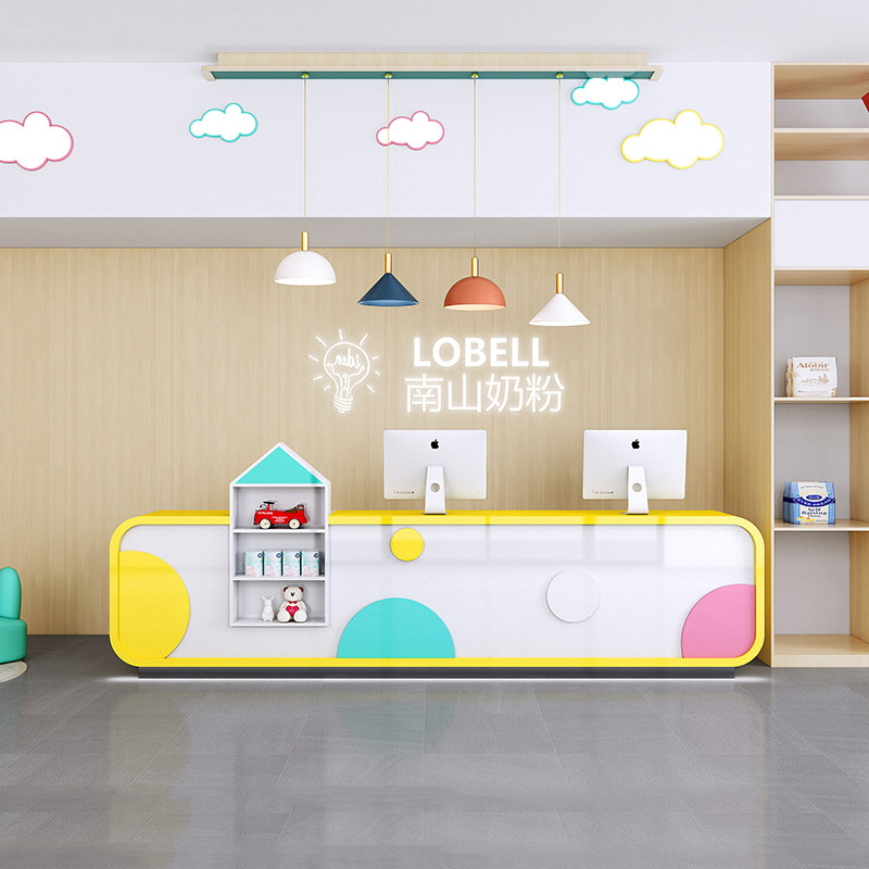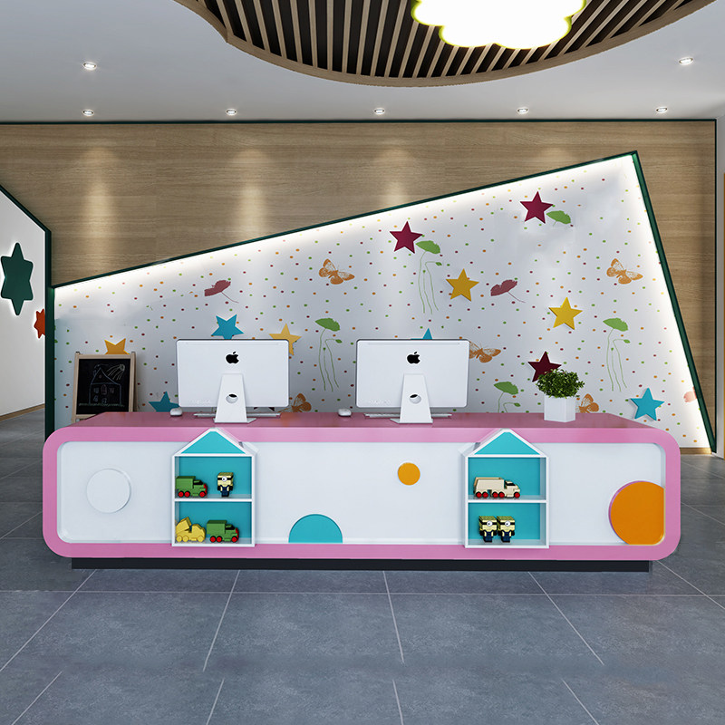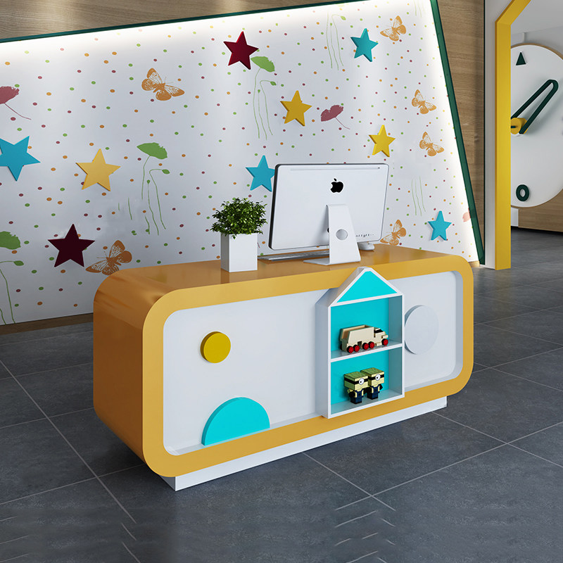 Blue Rhombus Early Teach Cartoon Bar training institute Baking Lacquer Front Desk Kindergarten Reception Desk Desk Collection Silver Counter