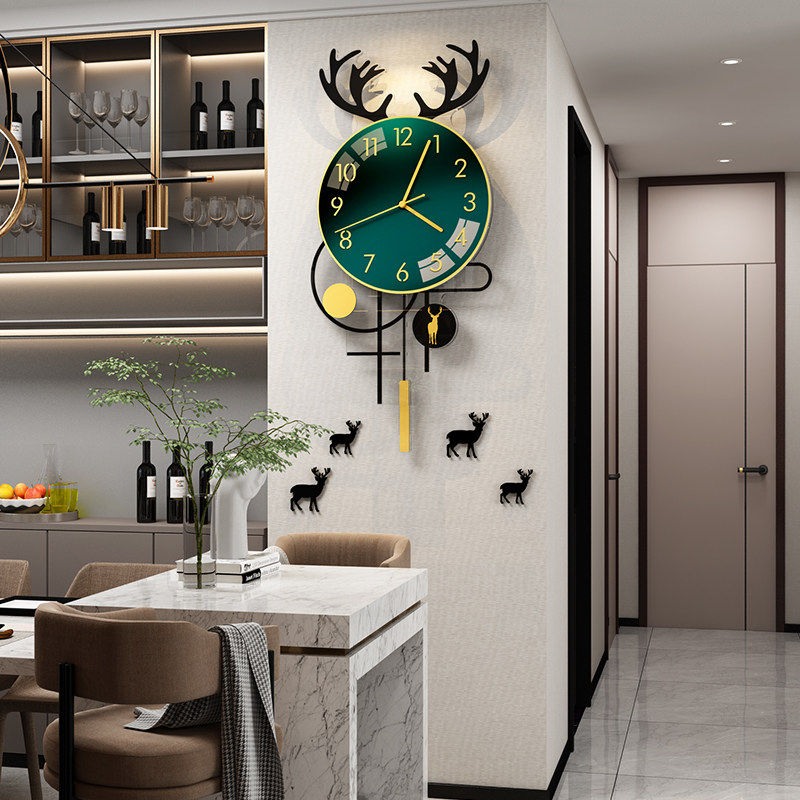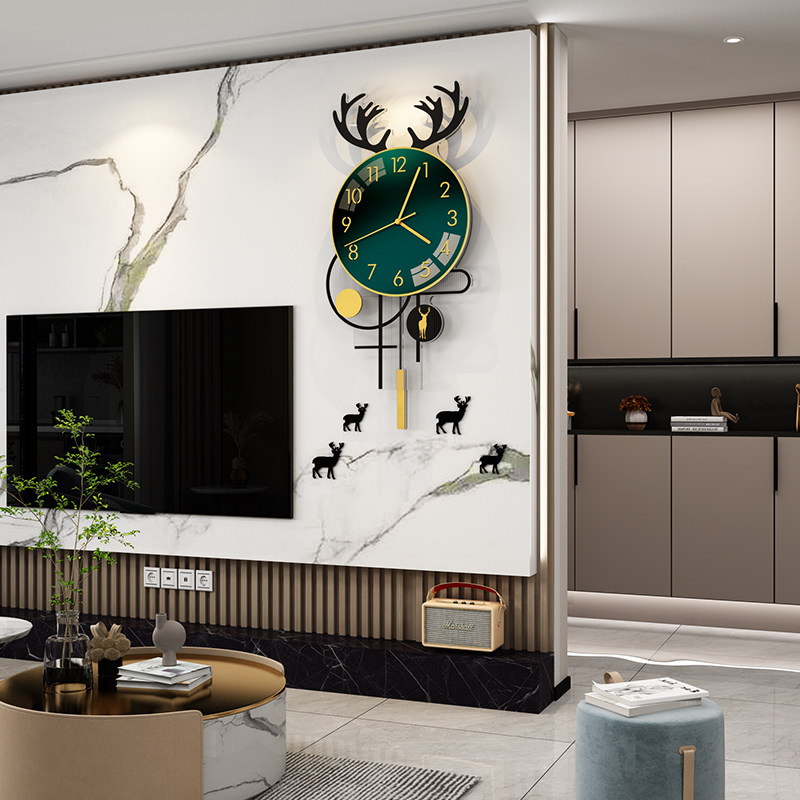 Creative Net Red Light Lavish Deer Head Hanging Clocks Home Fashion Living Room Personality Watches Modern Minima Decoration Hanging Wall Clock