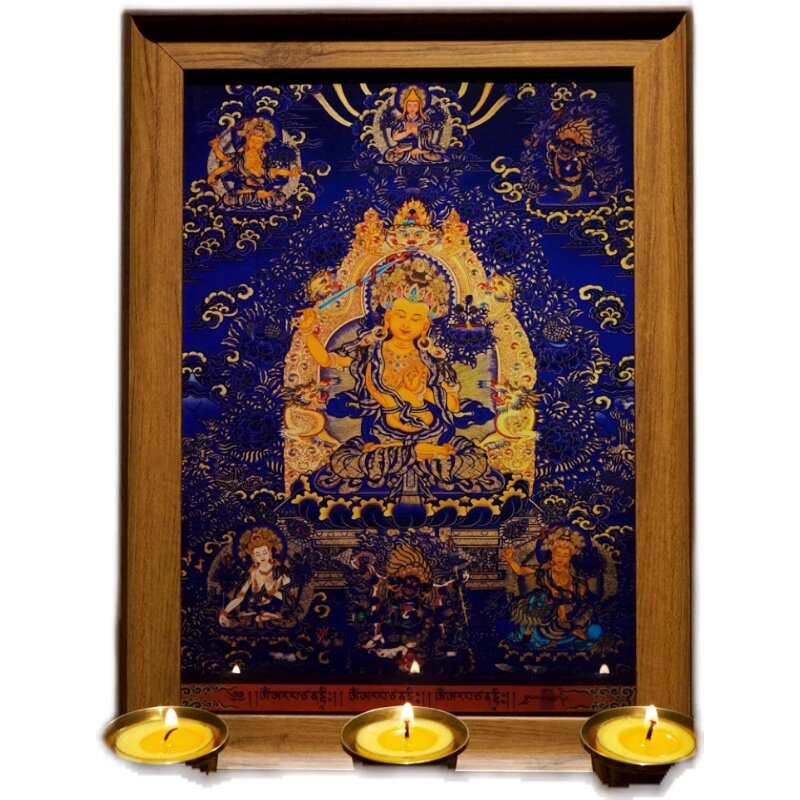 Fine limited edition re-engraving color printing works Regong painting school blue star thangka manjusri bodhisattva table with photo frame
